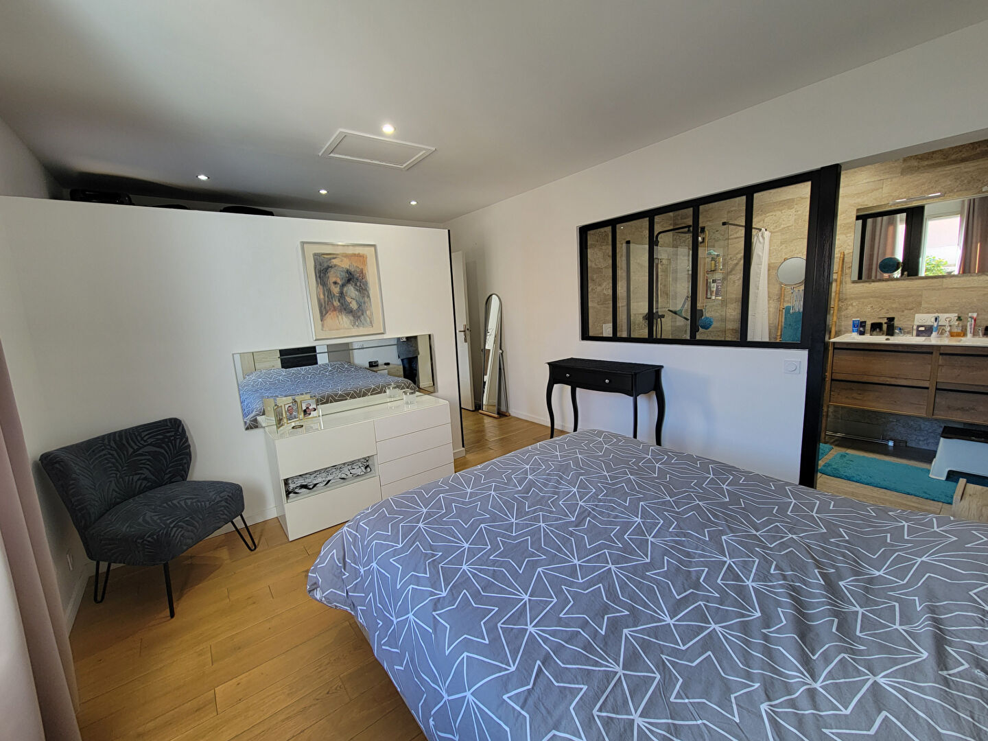 Le rez-de-chaussée accueille une superbe suite parentale avec dressing et salle d'eau privative, ainsi qu'une buanderie avec accès direct au garage.