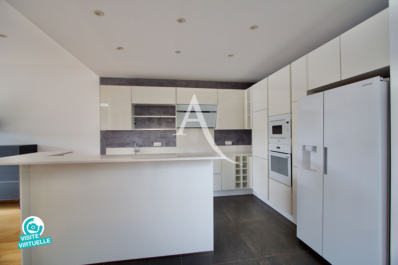 Implantée sur un terrain paysager de 475 m², elle offre des volumes généreux, des prestations haut de gamme et une parfaite continuité entre intérieur et extérieur grâce à ses larges baies vitrées donnant sur le jardin et la piscine traditionnelle.