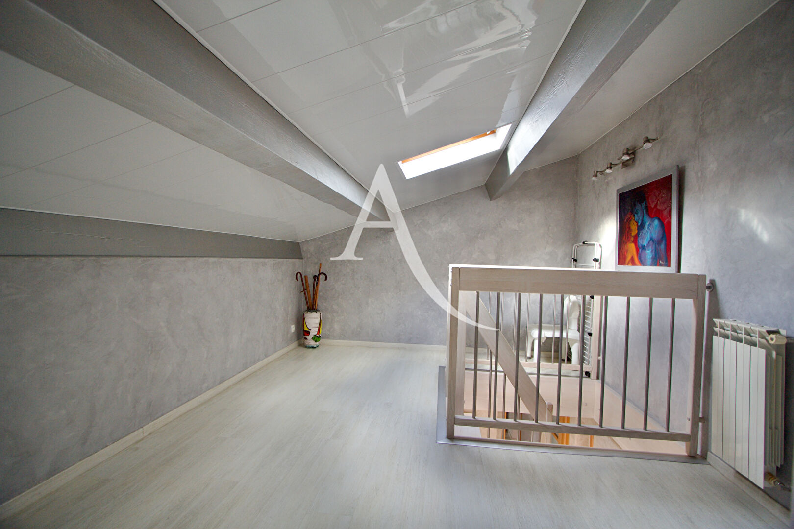 Une mezzanine fait office de bureau et propose un aménagement complémentaire possible.