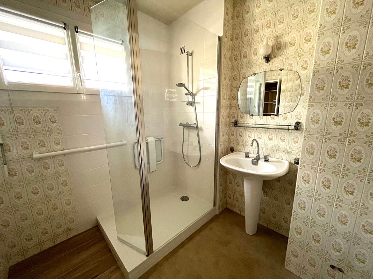 L'entrée se fait par le rez-de-chaussée, desservie par un escalier menant à un palier. Vous y trouverez une cuisine indépendante aménagée et équipée, ainsi qu'un salon-séjour lumineux avec moulures et cheminée insert, agrémenté de nombreux rangements. Sur ce même niveau, deux belles chambres dont une avec placard intégré, une salle d'eau avec douche à l'italienne et un WC indépendant complètent l'espace.