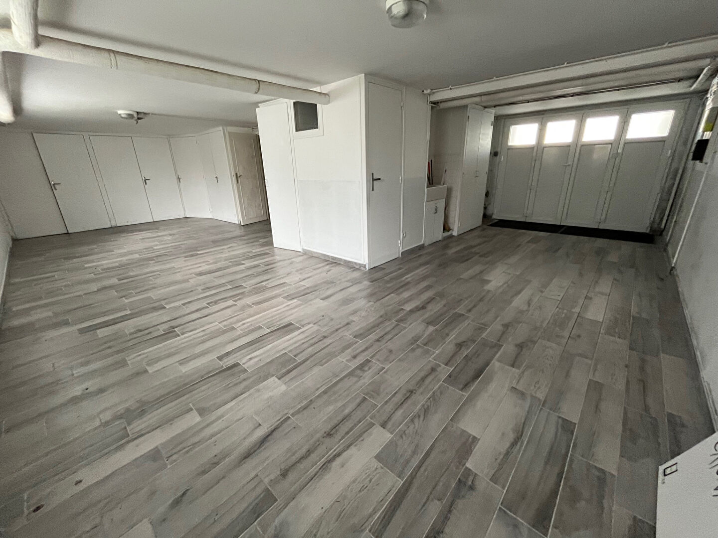 Le rez-de-chaussée propose également une chambre avec placards, une extension comprenant une pièce de réception (salon d'été, bureau ou accueil libéral), ainsi qu'une salle d'eau avec WC. Ce niveau offre la possibilité d'envisager une vie de plain-pied, et également de créer une seconde cuisine pour plus de confort et de modularité. Un grand garage carrelé, doté de multiples placards pour optimiser le rangement, vient compléter ce niveau.