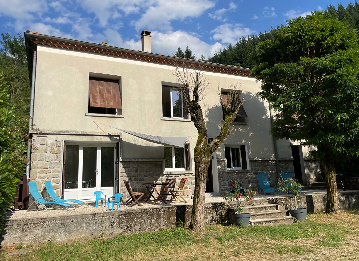 Cette maison à revenus dans un hameau de Laviolle (07), Vallée de la Volane, Proche d'Antraigues-sur-Volane (village de Jean Ferrat). Accès privé à la rivière et grand terrain boisé !
