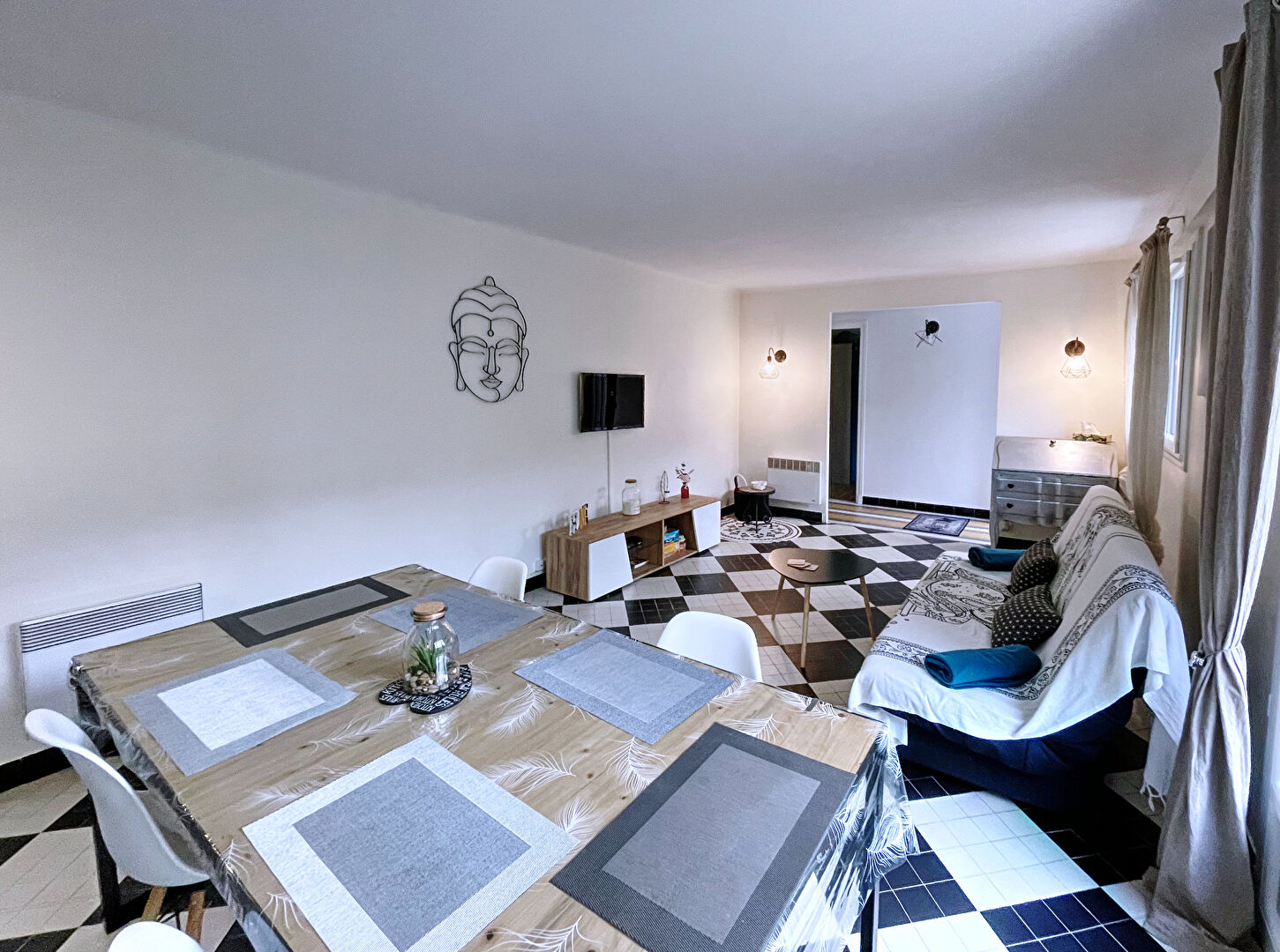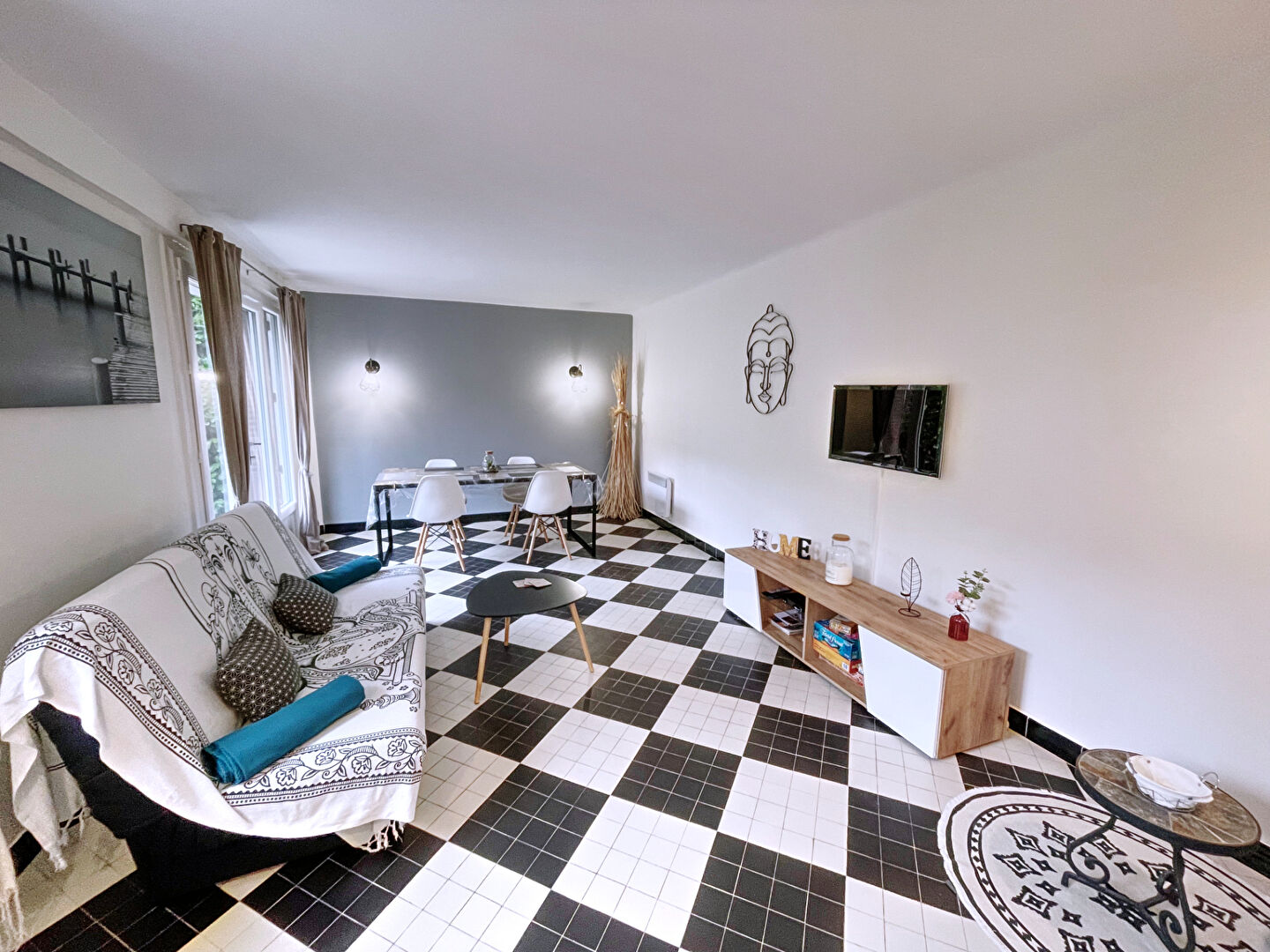 Au rez-de-jardin, appartement T3 meublé, actuellement loué en location touristique sur Airbnb :