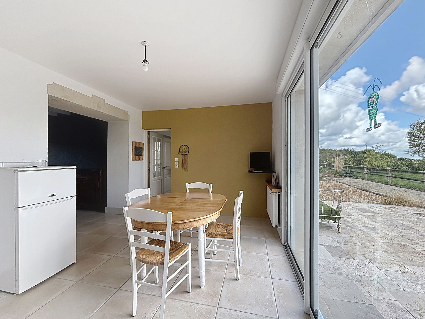 Elle est composée au rez-de-chaussée d'une pièce de vie avec cheminée insert, d'une cuisine semi ouverte aménagée, d'un bureau pouvant être aménagé en chambre, d'une arrière cuisine avec espace buanderie, d'un WC indépendant, d'une salle d'eau, d'un dégagement, d'un bureau, et de deux chambres (dont l'une dispose d'un accès direct sur la terrasse).