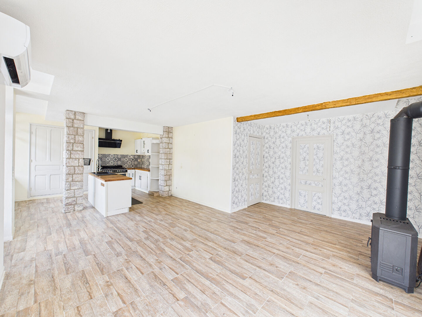 -Chauffage performant : poêle à bois au rez-de-chaussée, climatisation et poêle à granulés à l'étage, radiateurs électriques dans les chambres.