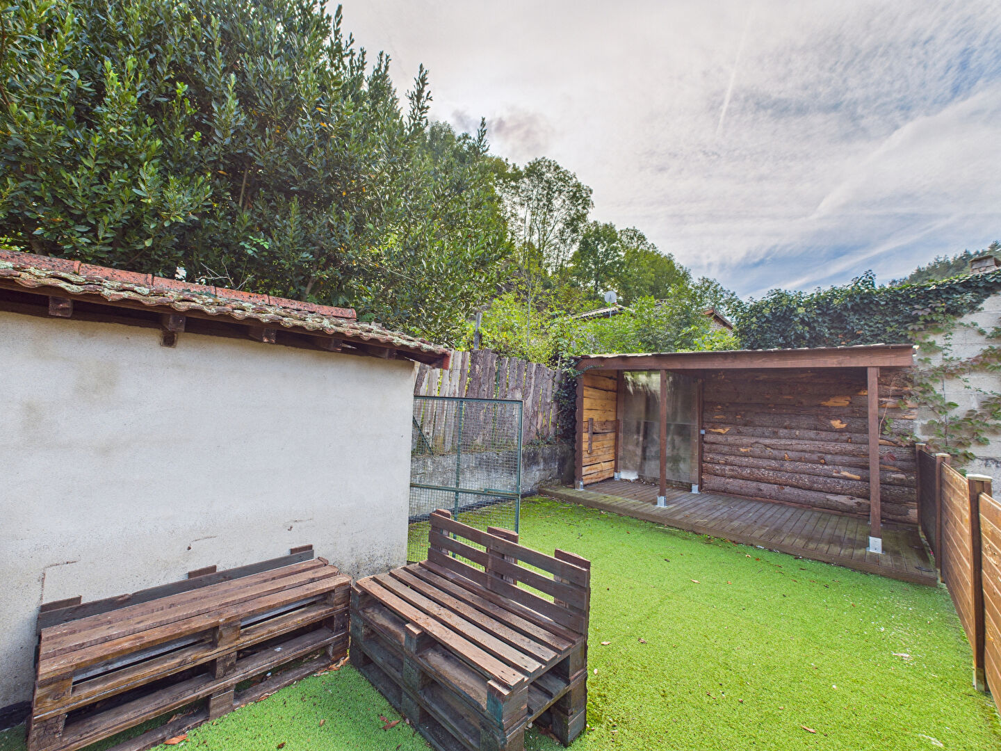 A l'extérieur, une terrasse couverte à côté une cuisine d'été, et un garage avec une seconde terrasse en auteur de cellui-ci.
