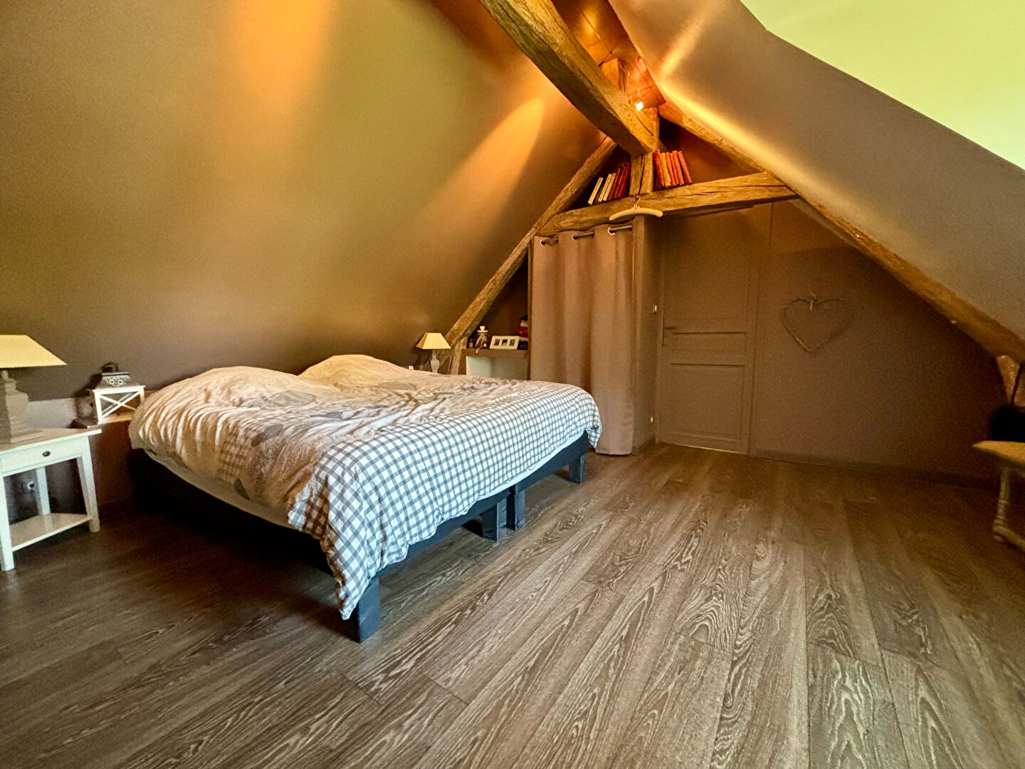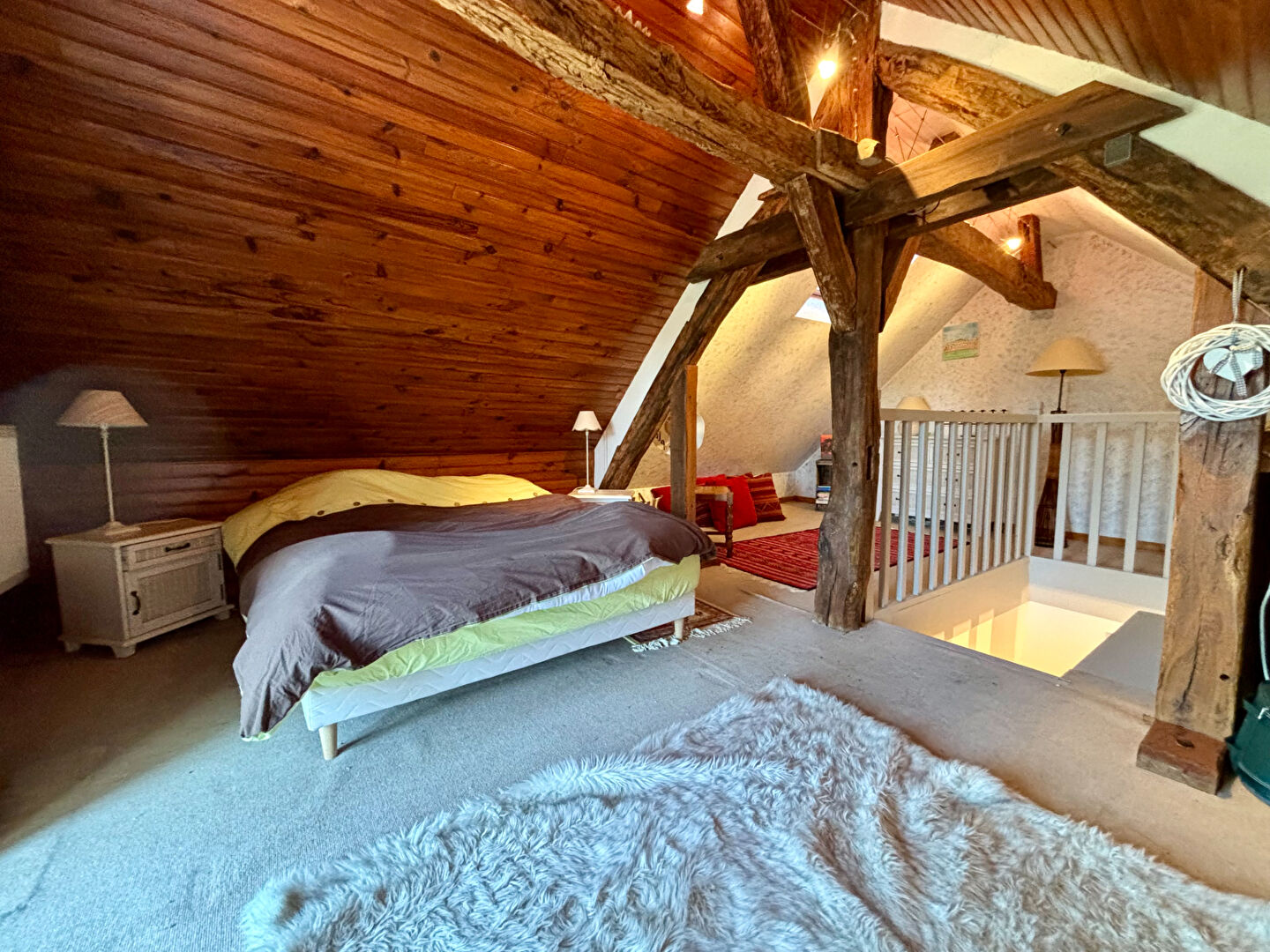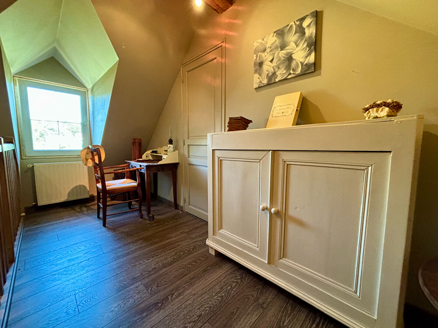 À l'étage, une chambre palière complète l'espace nuit. Depuis le séjour, un second escalier mène à un autre niveau comprenant un palier, une grande chambre ainsi qu'une pièce d'eau à terminer d'aménager selon vos envies.