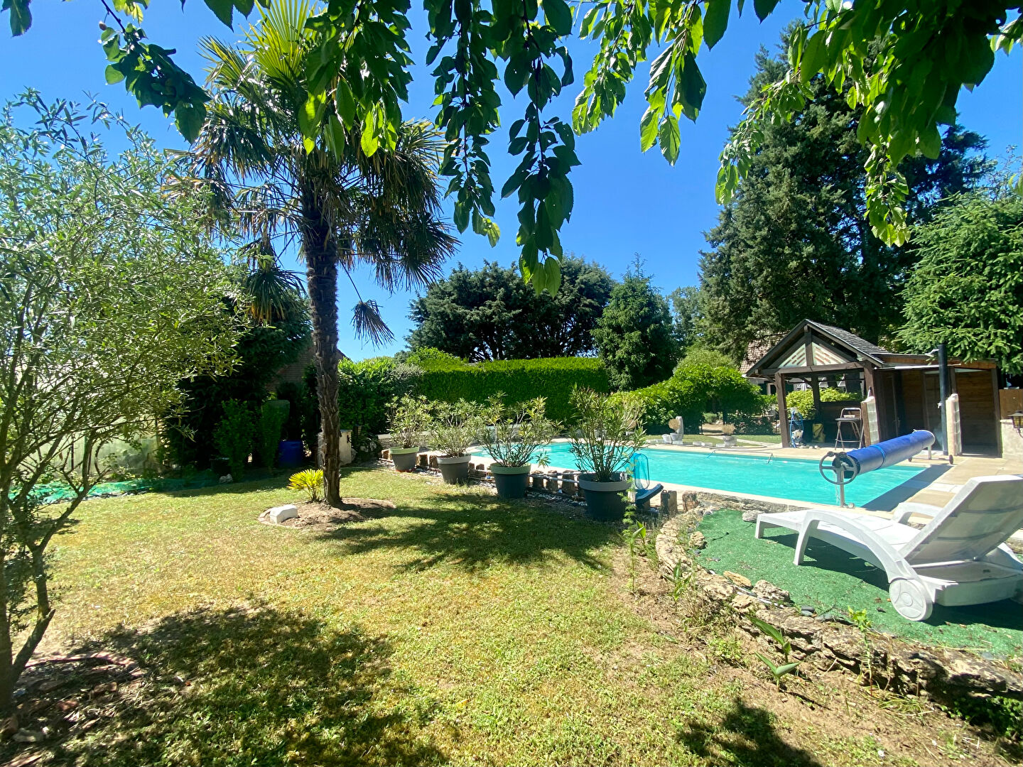 Le terrain de près de 2 000 m² est entièrement clos et joliment arboré. Il accueille une piscine, un deuxième garage, un abri extérieur, ainsi qu'un terrain de boules pour des moments conviviaux en famille ou entre amis.