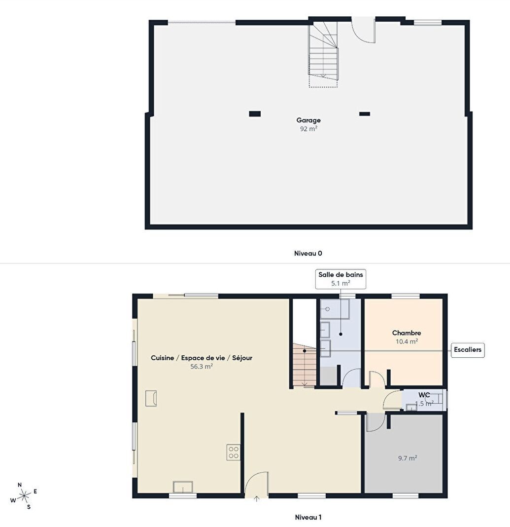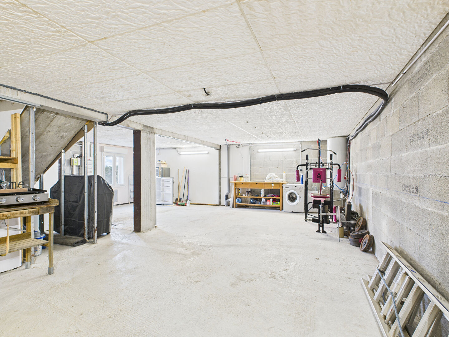 Le sous-sol 92 m²: il accueille une buanderie, un espace bricolage et le stationnement de plusieurs véhicules. Il offre également la possibilité d'aménager deux chambres supplémentaires et une salle d'eau, tout en conservant une partie garage.