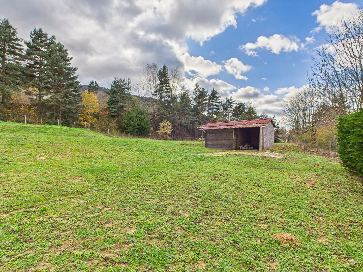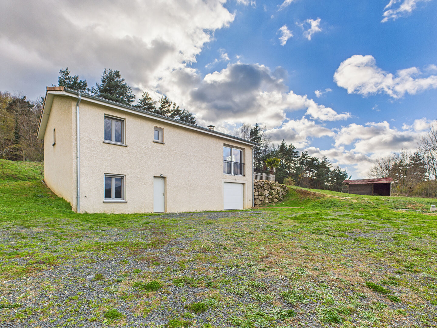 La maison est implantée sur un terrain clos d'environ 2 300 m².