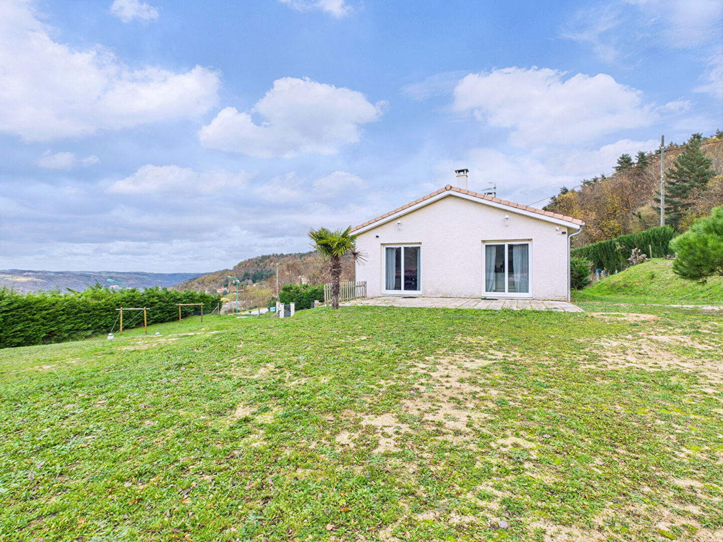 Située au village du Crestet, cette maison offre un cadre de vie paisible avec une vue sur les collines ardéchoises.