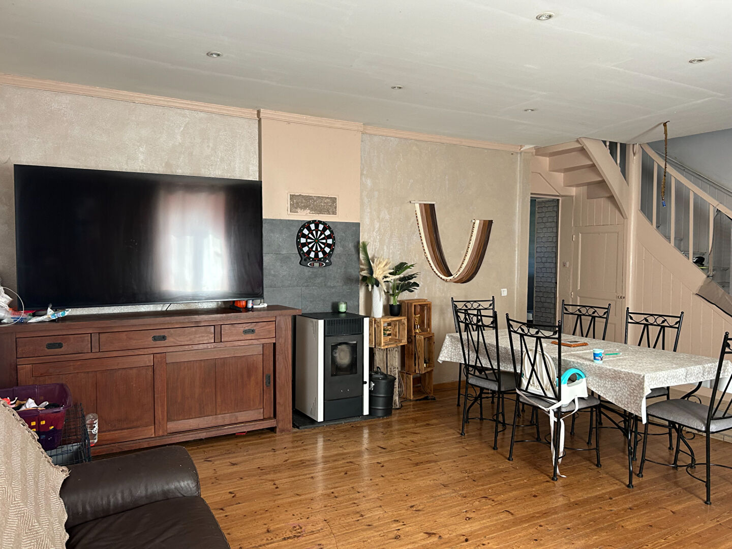 Au rez-de-chaussée : cuisine ouverte sur séjour, salle d'eau avec WC, débarras