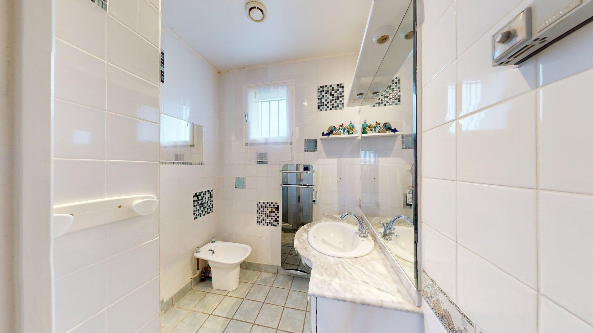Au rez-de-chaussée, le séjour de 37 m² exposé plein sud, ouvre sur un balcon-terrasse offrant une vue splendide. Une vaste cuisine aménagée, une première chambre utilisée en bureau et des WC indépendants complètent ce niveau.