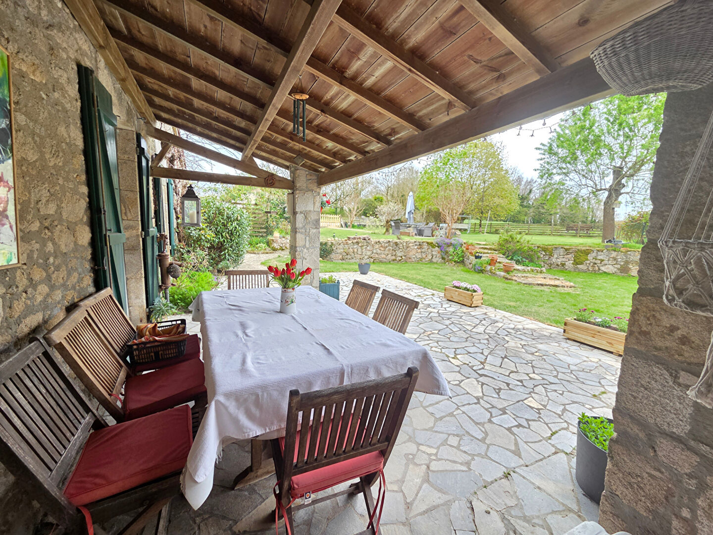 Avec ses 4 chambres , elle constitue le cadre idéal pour accueillir votre famille. Les poutres apparentes, les matériaux et les finitions soignées témoignent du souci du détail apporté à la rénovation de cette longère.