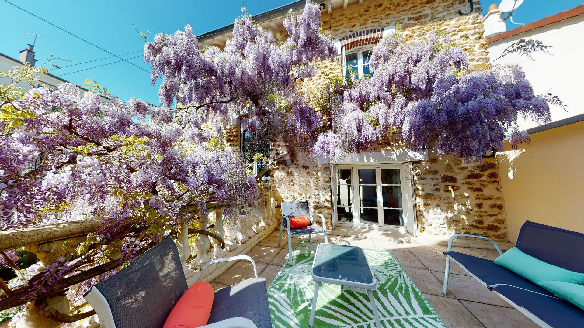 A 10 mn de marche du coeur de ville et du RER ralliant Paris centre en 20 mn , à l'arrière d'un écran de verdure arborée, cette propriété de 2 maisons propose , en toute indépendance, un lieu de vie serein et confortable à 2 générations ou 2 familles amies .