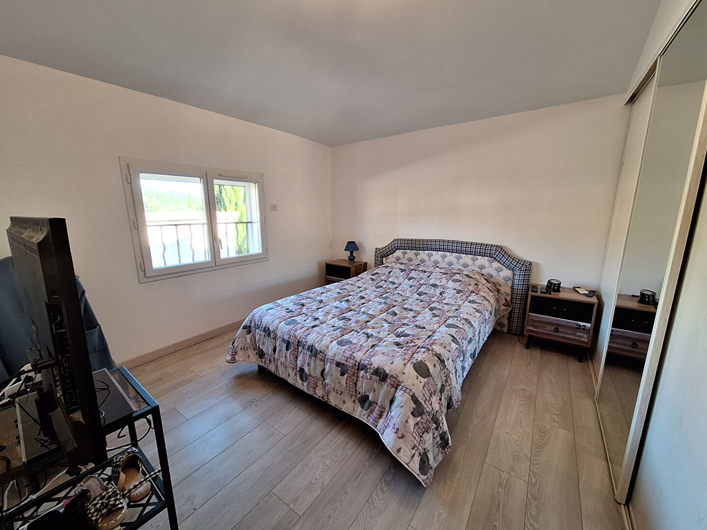 Le tout est équipé d'un plancher chauffant réversible, de panneaux solaires avec revente et autoconsommation, ainsi que d'un grand jardin arboré avec terrain de pétanque.