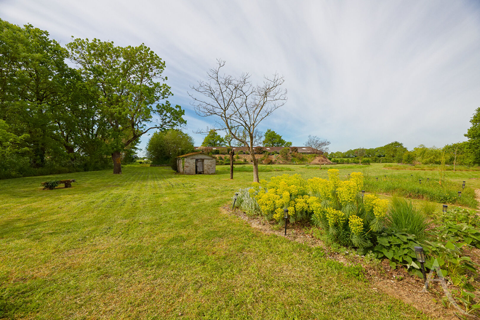 À l'extérieur, un magnifique terrain arboré d'environ 7 200 m² vous garantit calme et sérénité. Plusieurs dépendances viennent enrichir la propriété : une grange de stockage, une seconde grange en pierre offrant un fort potentiel de réhabilitation, ainsi qu'une maison attenante à repenser selon vos projets.