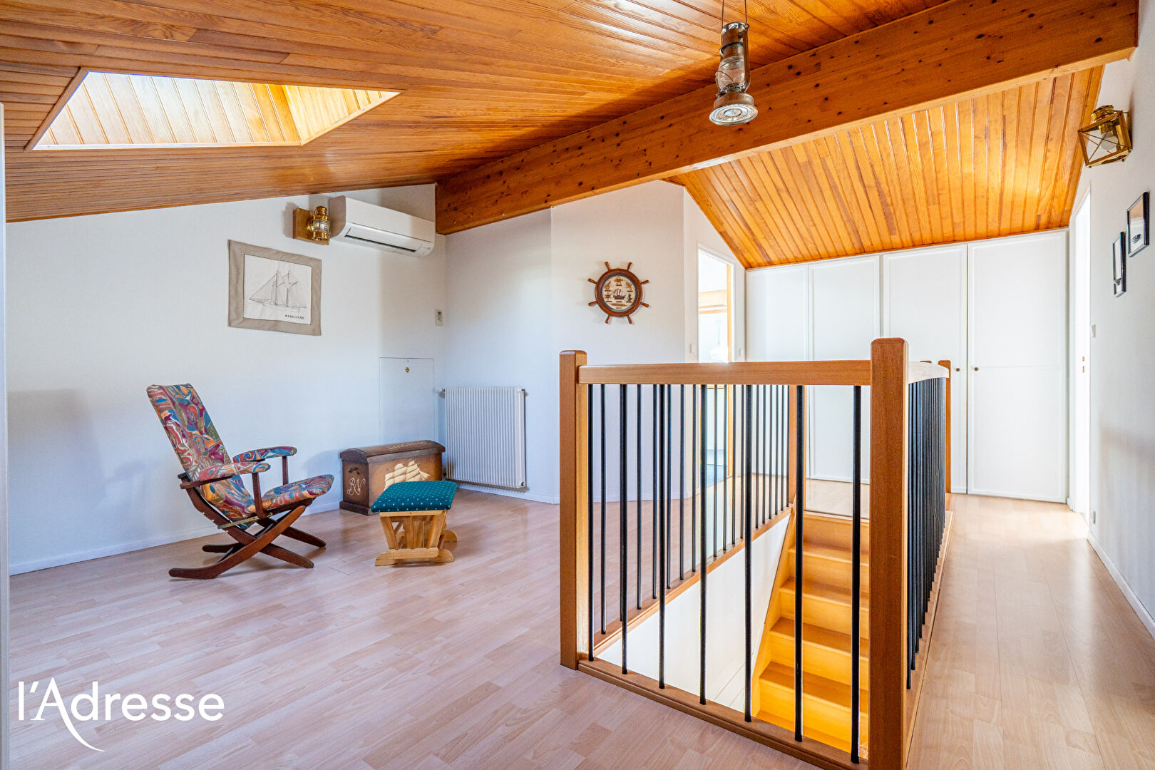 À l'étage :Une grande mezzanine ouverte ,deux chambres supplémentaires , salle d'eau et WC. Les extérieurs sont en parfait état.