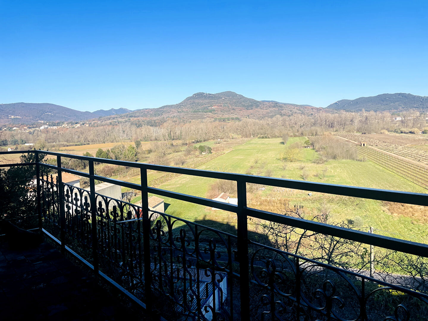 LES AIRES, maison de village en pierre composée de deux logements. Un grand studio d'environ 40 m2 au rez-de-chaussée donnant sur une terrasse avec vue dégagée et au premier étage l'autre logement d'environ 90 m2 comprenant séjour donnant sur un grand balcon, cuisine, salle de bains avec baignoire et douche et deux chambres.