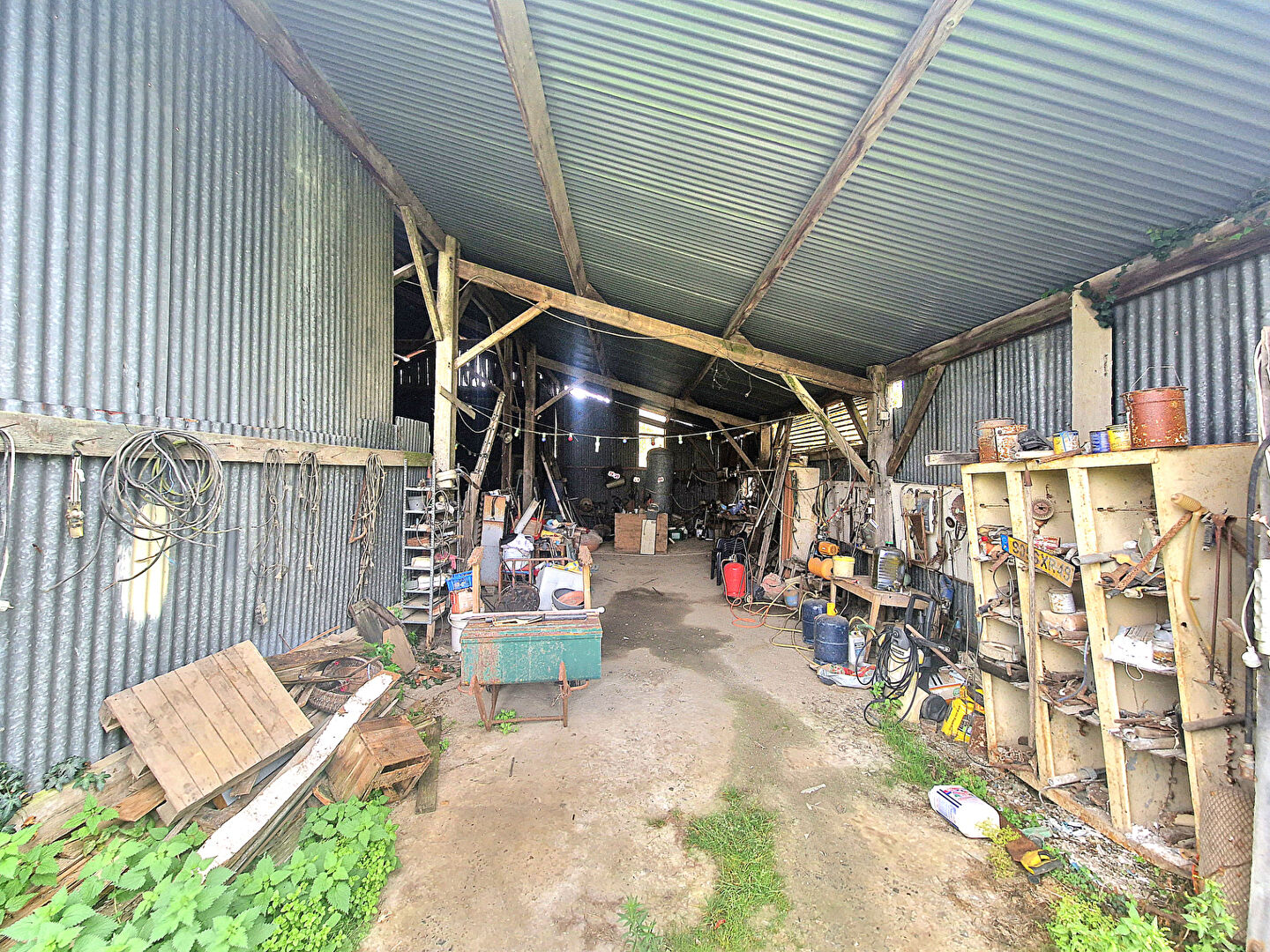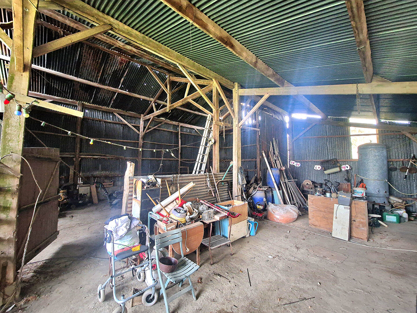 À l'extérieur, vous profiterez d'un terrain de plus de 1300 m², arboré et constructible, avec de nombreuses dépendances : un garage fermé, un salon d'été, un hangar pour stationnement et un grand hangar d'environ 150 m². Cet ensemble conviendra aussi bien à un particulier souhaitant développer son espace de vie qu'à un artisan ou un investisseur à la recherche d'un bien avec volumes et possibilités.