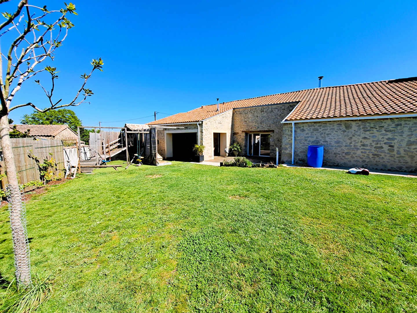 À l'extérieur, vous profitez d'un jardin entièrement clôturé, agréable et sécurisé, complété par une terrasse, idéale pour les moments de détente.