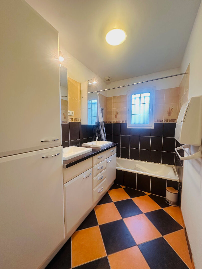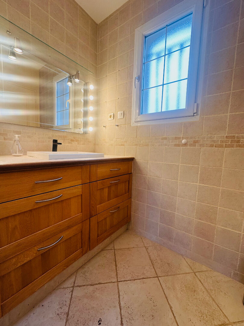 Vous découvrirez, une entrée avec placard de rangement , un spacieux et lumineux salon séjour avec insert, une cuisine ouverte aménagée et équipée, 3 chambres dont une parentale avec dressing et salle d'eau , une salle de bain, un cellier et une buanderie, wc avec lave mains, une grande terrasse.