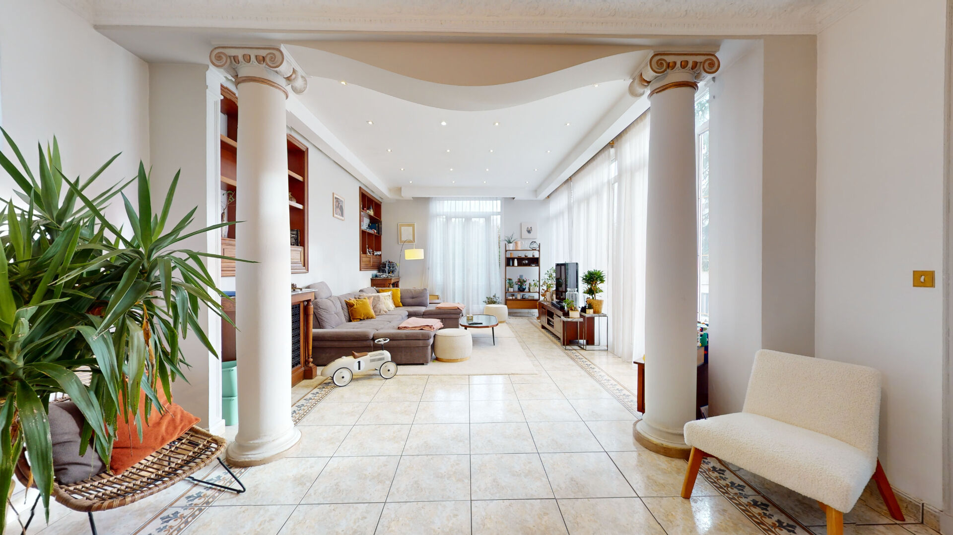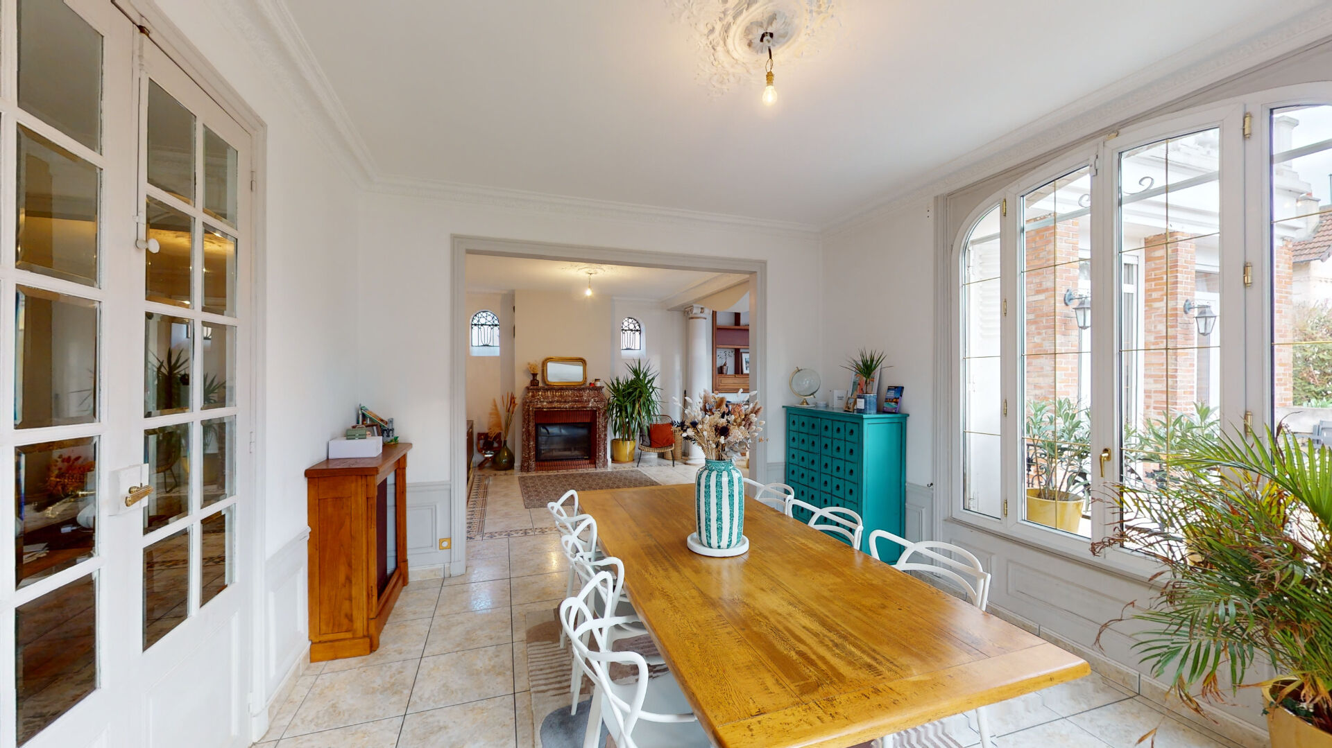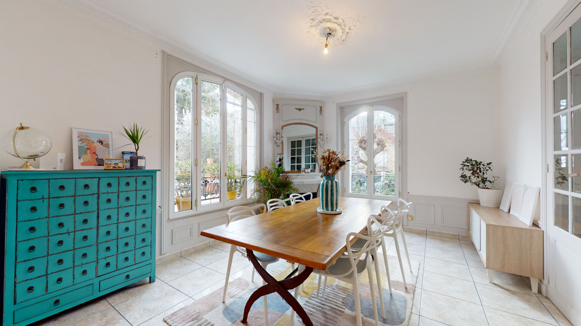 Au Pavillon-sous-Bois, dans un quartier pavillonnaire calme et recherché, à proximité immédiate des transports et des commerces, et à deux pas des promenades du canal de l'Ourcq permettant de rejoindre le bassin de la Villette à vélo, cette maison de 221 m² allie confort moderne (aspiration centralisée, caméras de surveillance, portail électrique?) et charme de l'ancien.