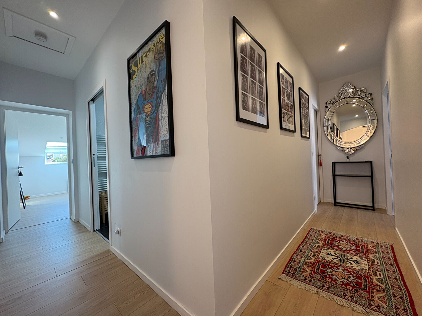 Dès l'entrée, un hall spacieux dessert la pièce de vie particulièrement lumineuse de 70 m², prolongée par une cuisine ouverte élégante et conviviale. L'espace nuit se distingue par ses sept chambres dont deux en rez, offrant un cadre idéal pour une vie de famille ou l'accueil d'invités en toute sérénité.