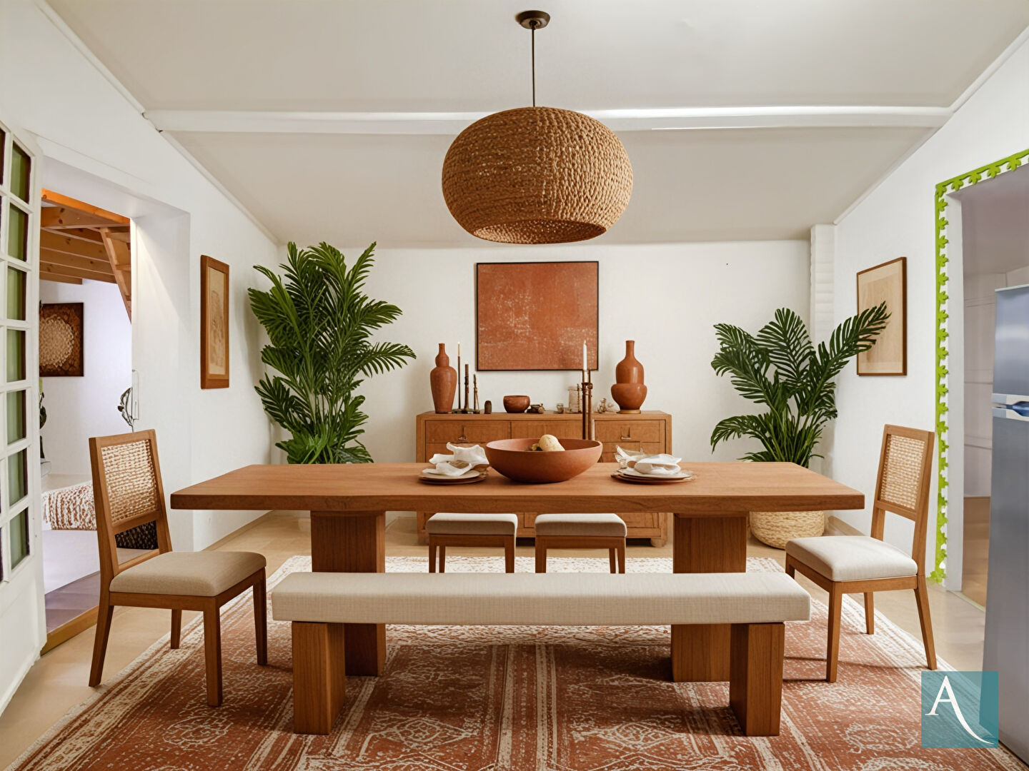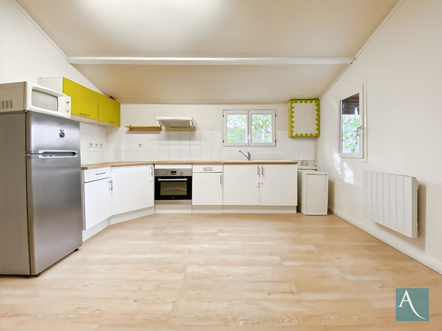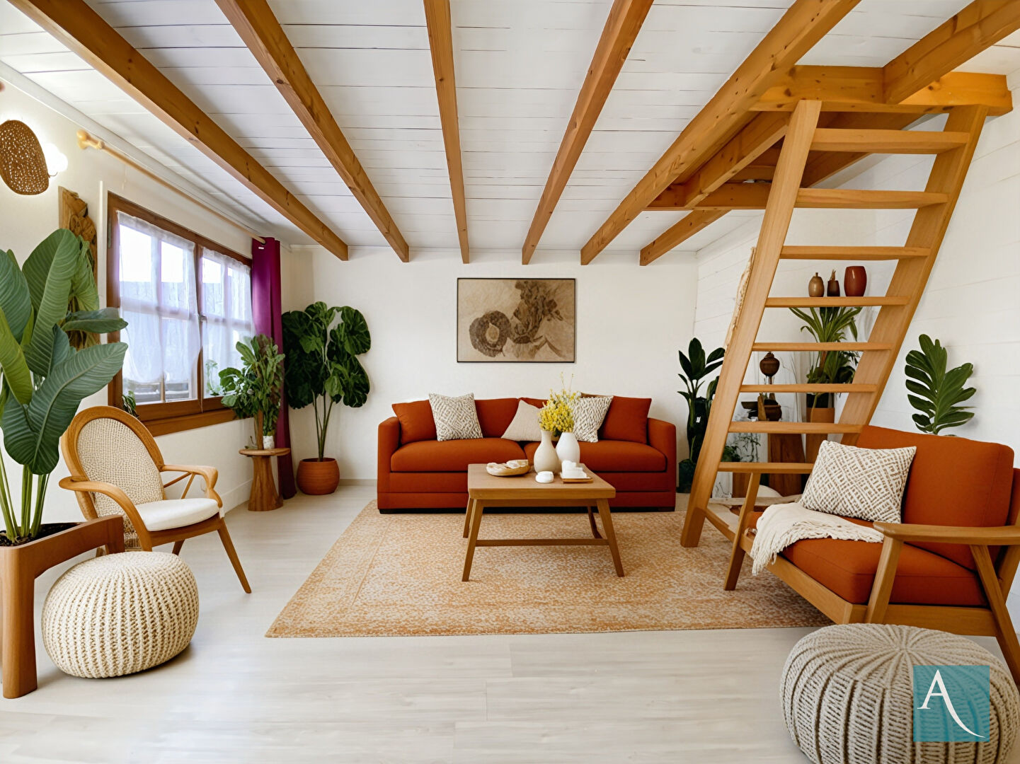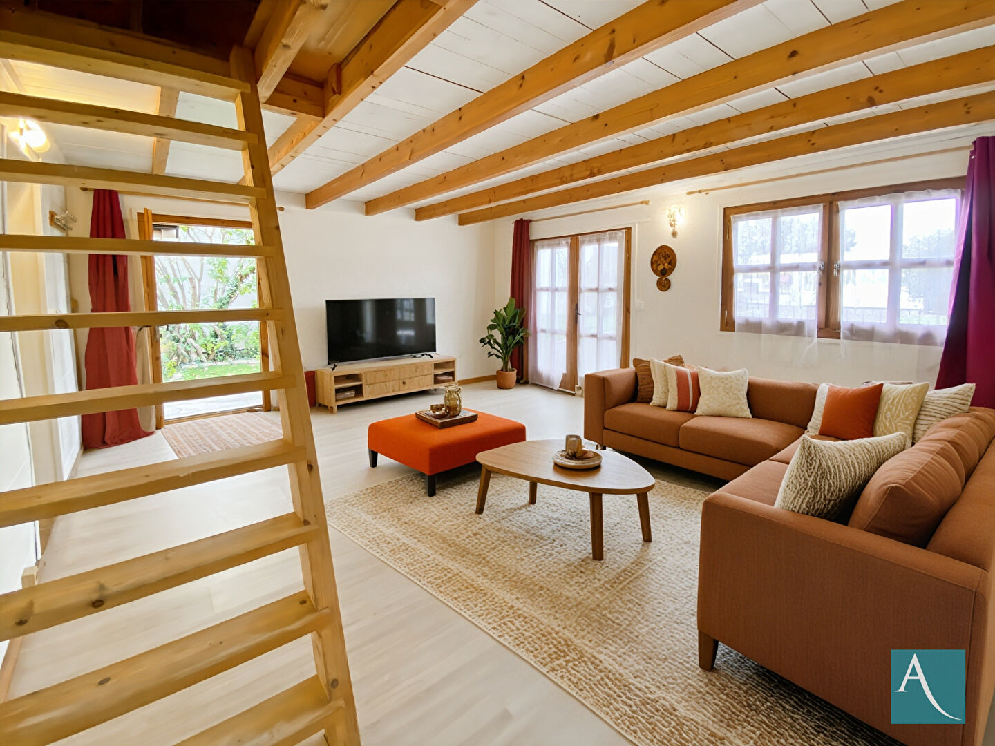 Le chalet orienté Est-Ouest accueille la lumière à toute heure. On imagine les petits-déjeuners, les après-midis lecture, les repas en famille ou entre amis, ouverts sur le jardin. La cuisine indépendante (16 m²), meublée, permet de cuisiner avec confort et d'installer un espace dinatoire.