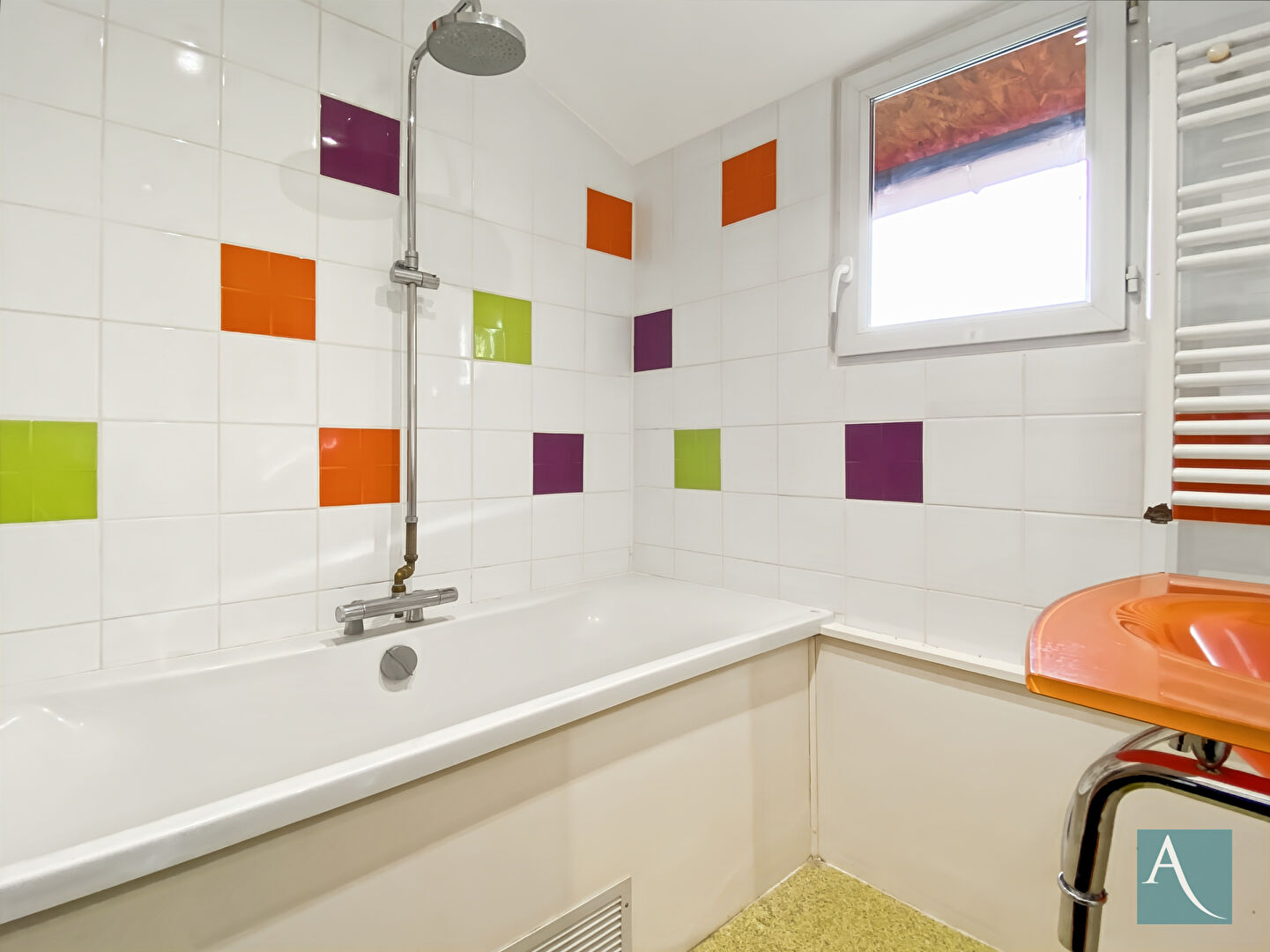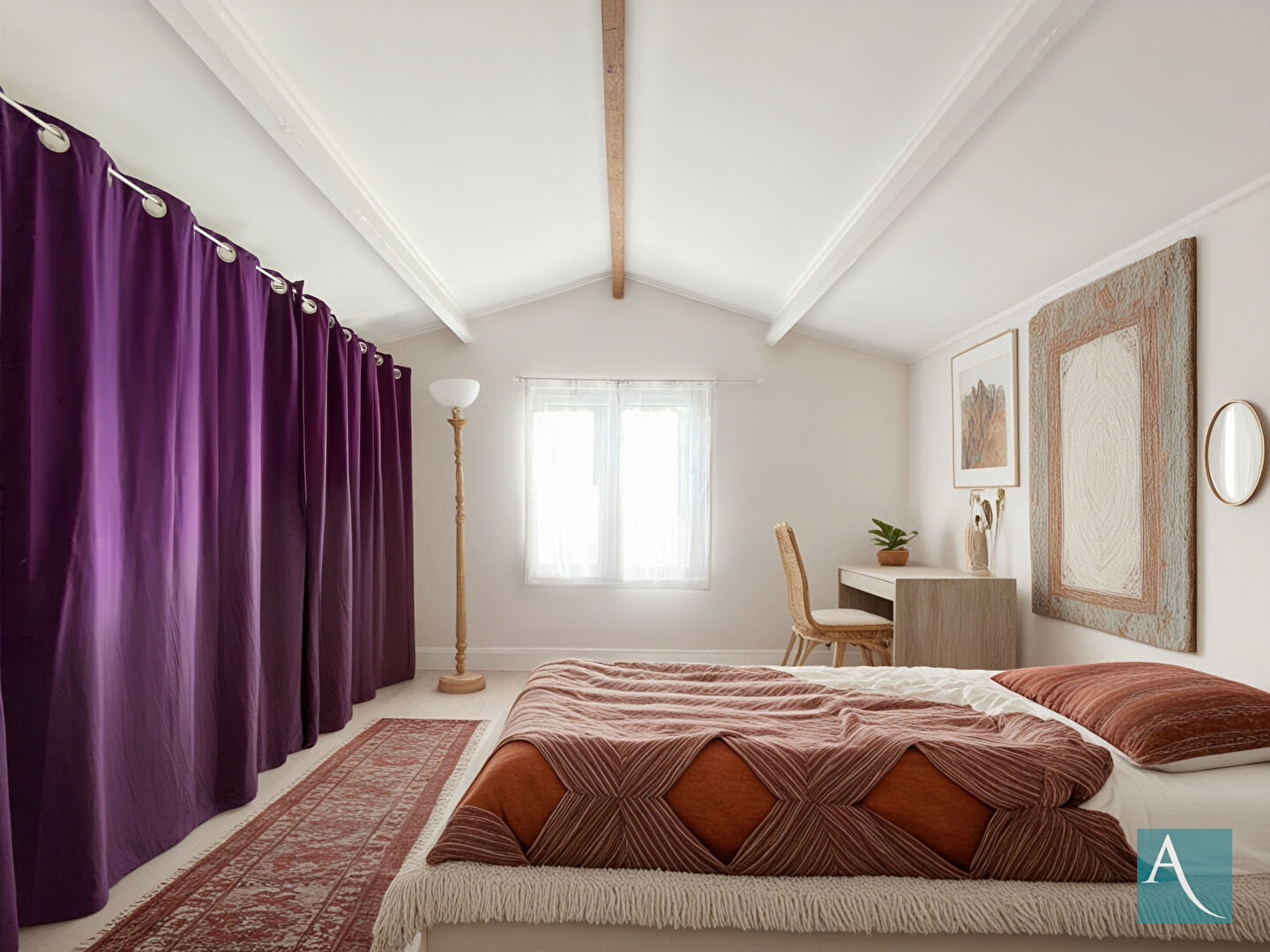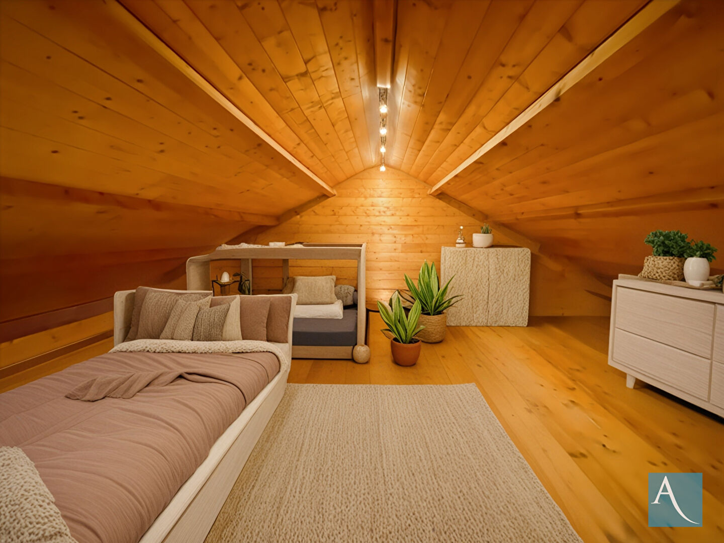 Côté nuit, une chambre de 15 m² au calme, une salle de bain lumineuse, des toilettes séparées, et un espace buanderie/penderie/bureau de 7 m² parfait à aménager à votre guise. Une mezzanine astucieuse, d'environ 20 m² au sol, offre un espace de rangement ou de couchage d'appoint sous les toits.