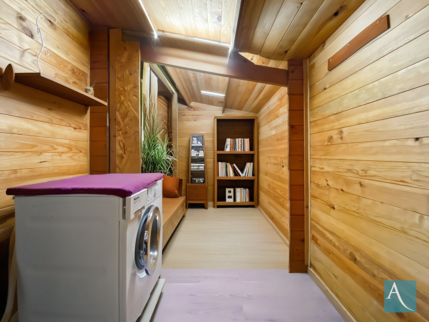 À l'extérieur, le jardin de 471 m², arboré, intimiste, est un vrai havre de paix. Avec des places de stationnement goudronnées, un confort rare dans le secteur. La première partie construire en 1974 et l'extension en 2009. Bonne isolation, le chalet est équipé de menuiseries mixte PVC/bois, d'un chauffage électrique individuel et raccordée au tout-à-l'égout.