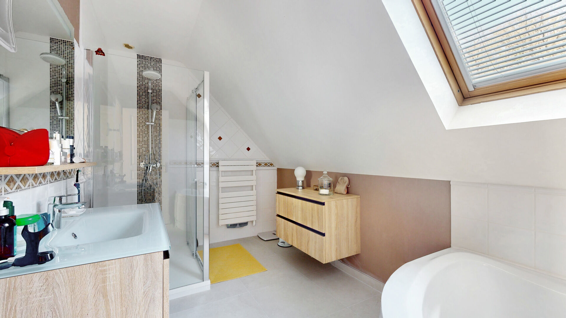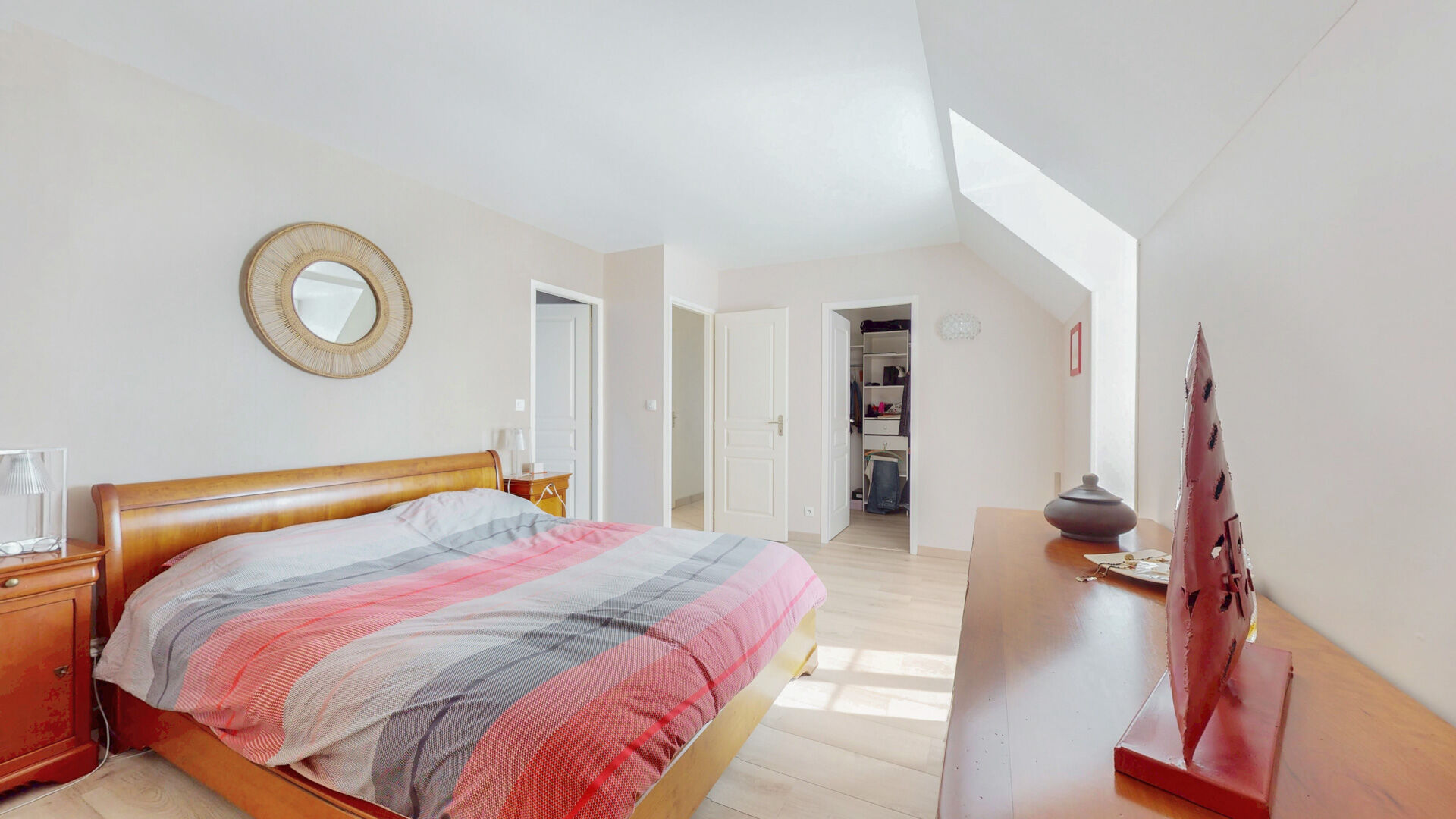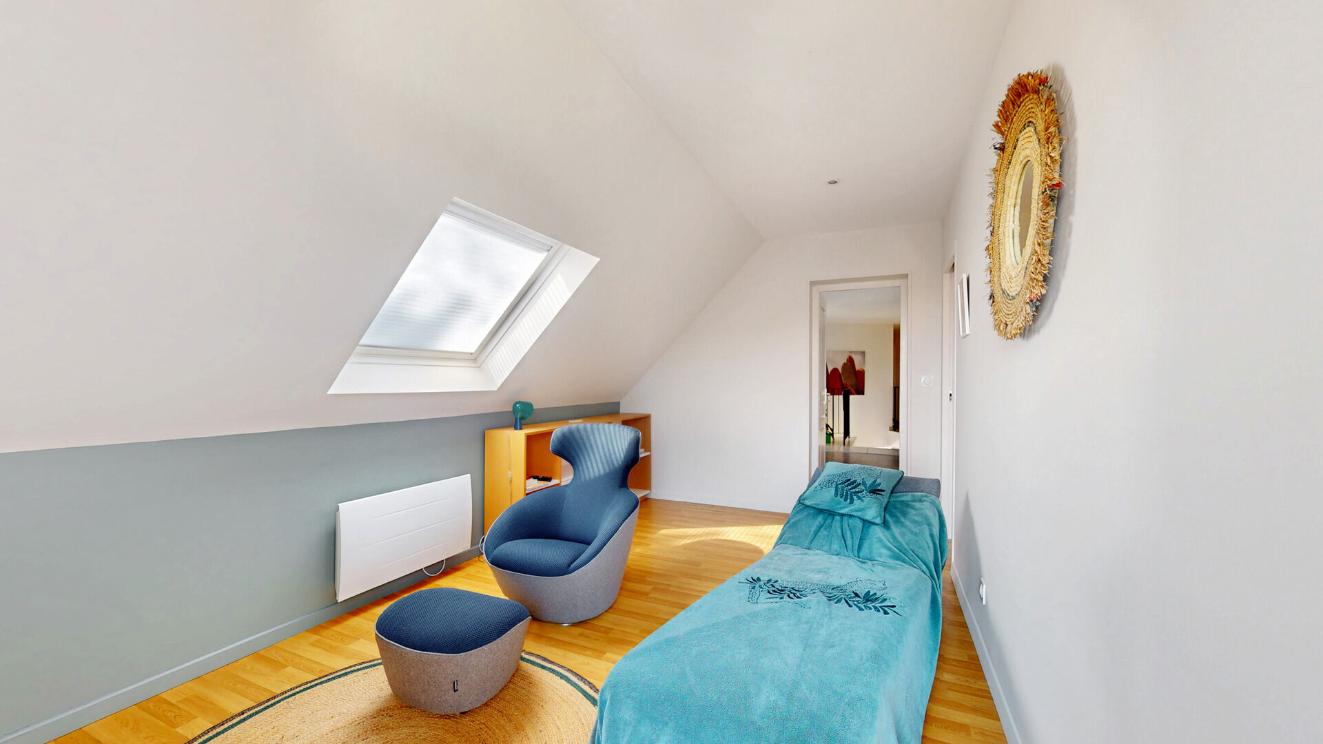 À l'étage, un grand palier pouvant faire office de bureau vous accueille, offrant un espace supplémentaire pour répondre à vos besoins. Vous y trouverez également 4 chambres, dont une avec sa propre salle d'eau et dressing attenant, pour un confort optimal. Une salle de bain et un WC séparé viennent compléter ce niveau.