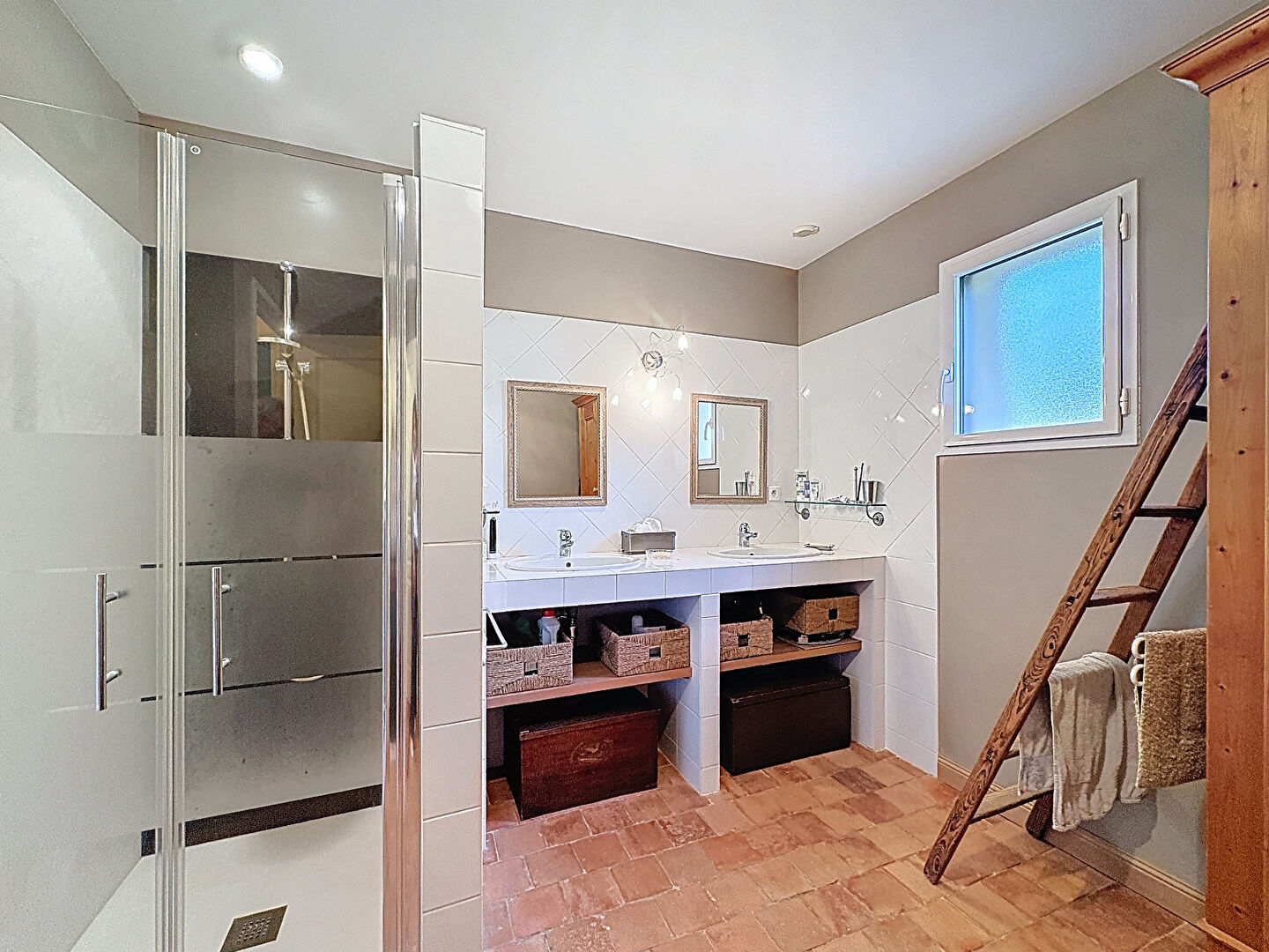 Les tommettes des Rairies, les parquets massifs et les finitions soignées apportent une authenticité chaleureuse à chaque espace.
