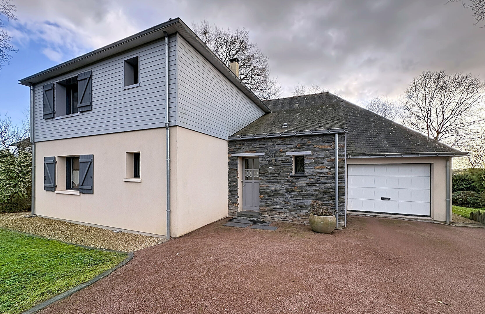 La maison dispose de 4 chambres, dont 2 de plain-pied, parfaitement adaptées à une vie de famille fluide et confortable.