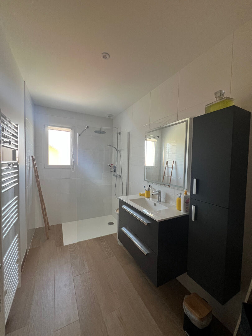 Cette charmante maison, vous offre des prestations de qualité et une décoration soignée. Elle se compose, d'un salon séjour spacieux ouvrant sur la terrasse et le jardin, une cuisine aménagée et équipée, trois chambres avec placard, deux salles d'eau, un WC séparé avec lave-mains, un garage buanderie de 32m² complète ce bien, afin d'allier confort et praticité. Le jardin joliment paysagé et aménagé, vous propose une terrasse avec pergola, exposé Sud , afin de profiter pleinement des beaux jours et de moments conviviaux, en famille et entre amis.