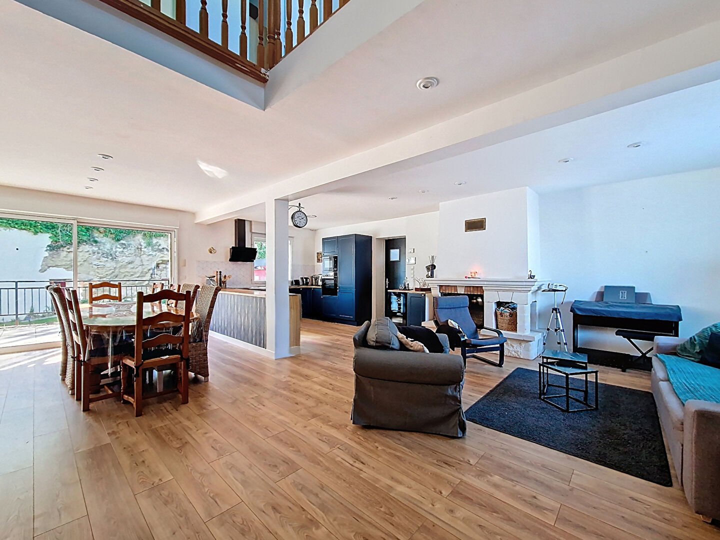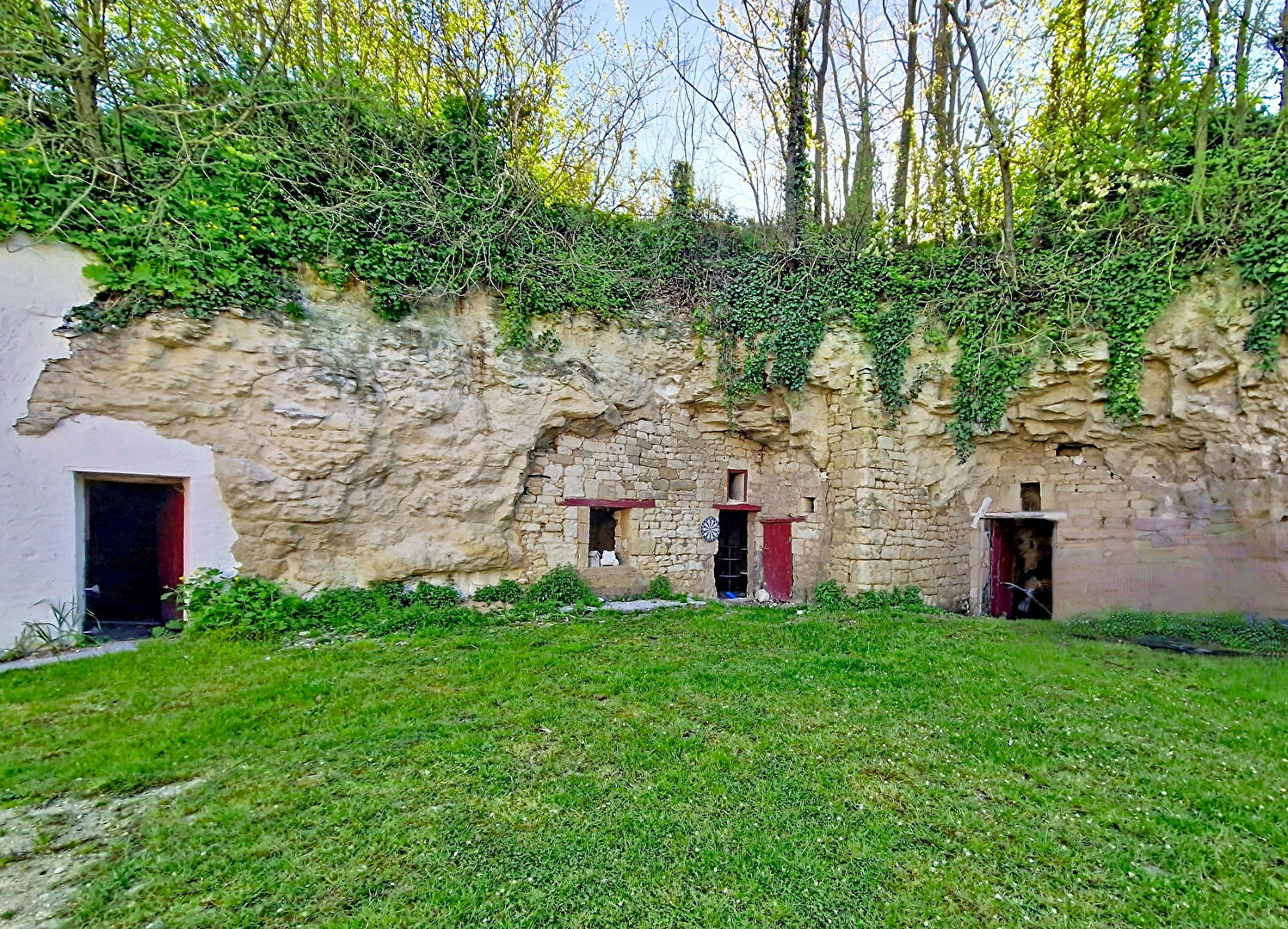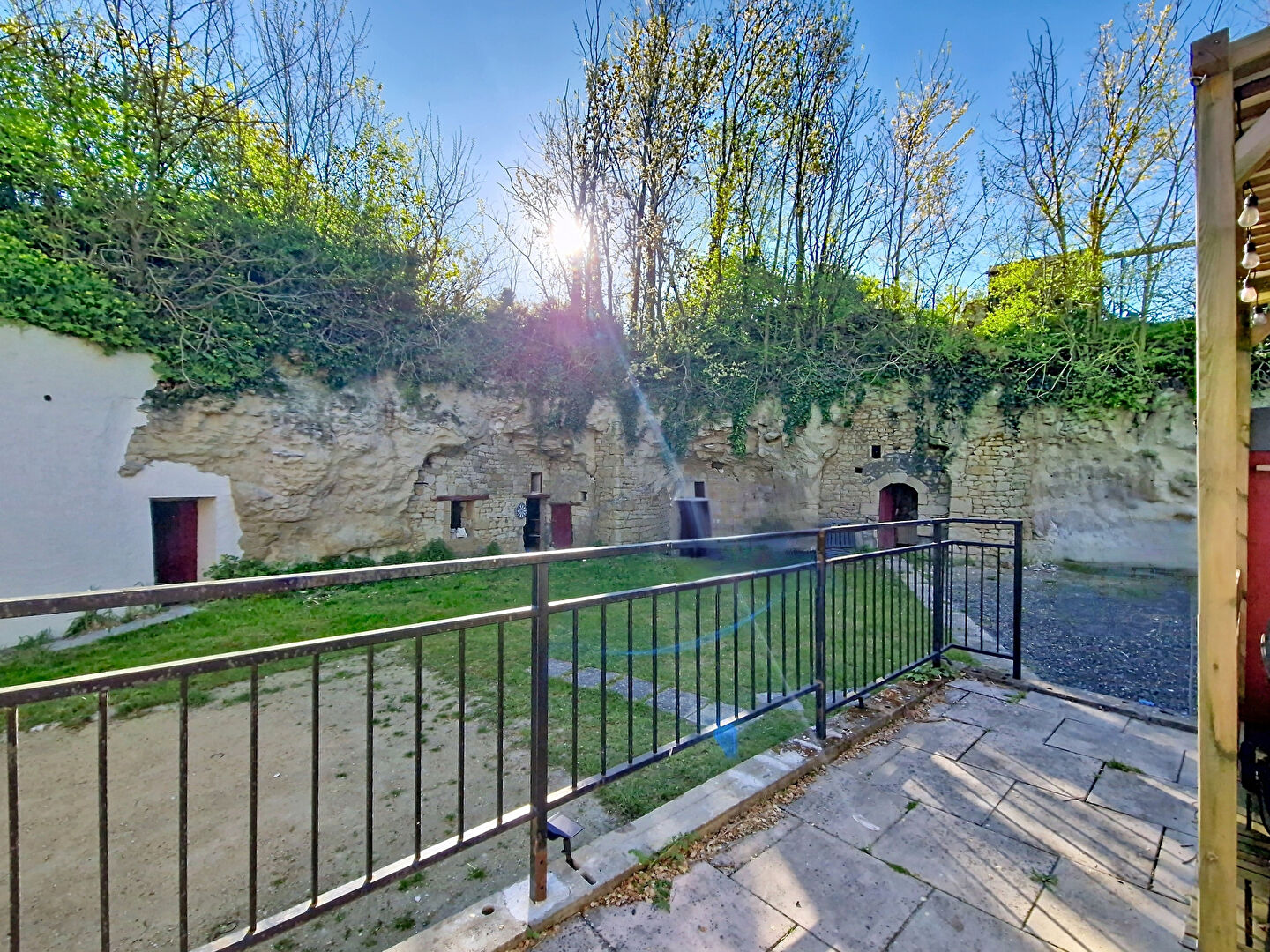 L'étage propose quatre chambres supplémentaires ainsi qu'une salle de bain avec WC, permettant à chacun de profiter de son espace. Le jardin clos, d'une superficie proche de 900 m², offre une belle terrasse pour les moments en extérieur et réserve la surprise de troglodytes typiques du secteur, ajoutant un charme singulier à la propriété.