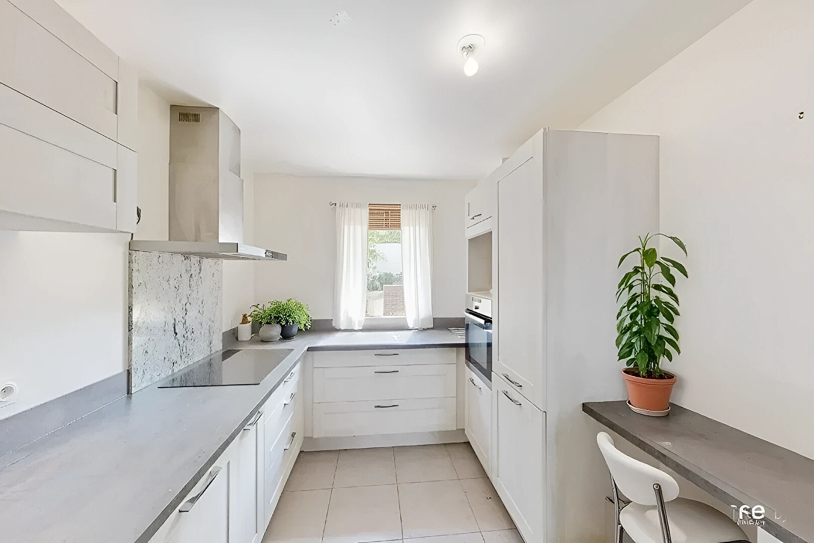 Notre maison d'aspect architecte aevc sa toiture terrasse nous offre : -Au rez-de-chaussée : une entrée avec placards, une pièce à vivre de 50 m2 env avec cuisine aménagée et équipée, cheminée possible, l'ensemble ouvrant sur terrasse et jardin, une salle d'eau.