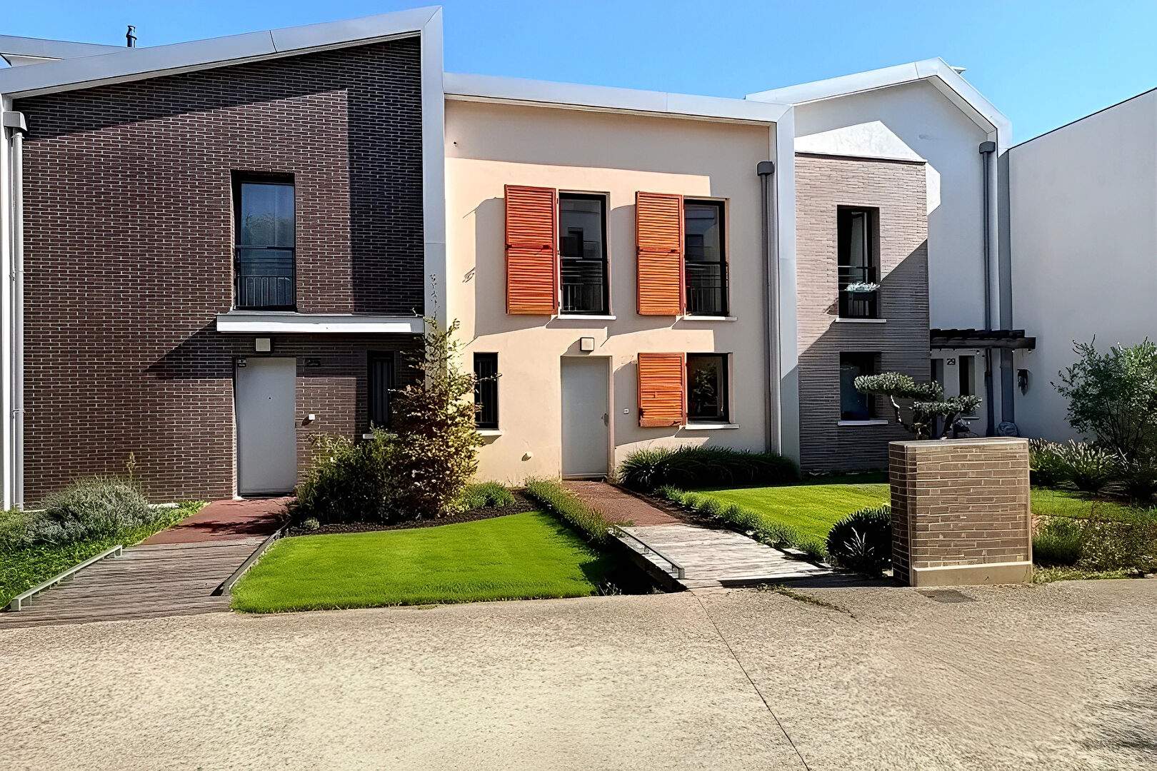 Au coeur de l'éco quartier nichée derrière la place commerçante, découvrez une allée bordée d'arbres et de cépées, le long de laquelle s'articulent nos maisons qui se suivent dans une séquence de formes, de teintes et de matériaux, qui donne a chacune sa propre personalité.
