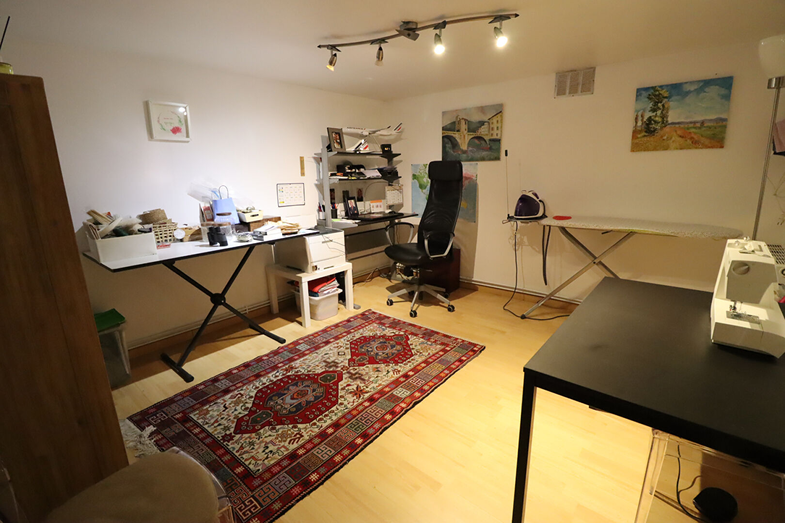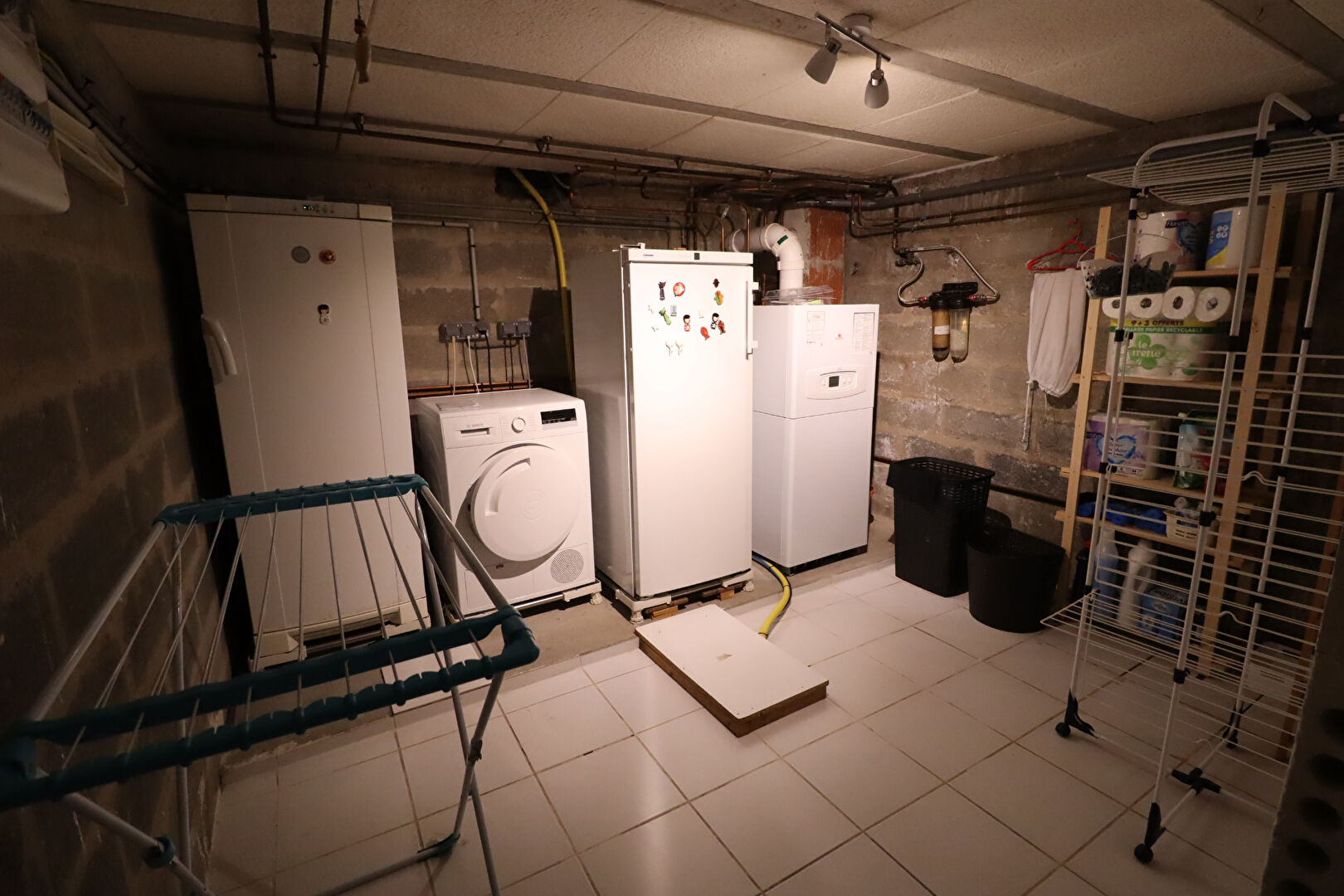 Au sous-sol : Une chaufferie, une cave, un espace de rangement, et 2 bureaux.