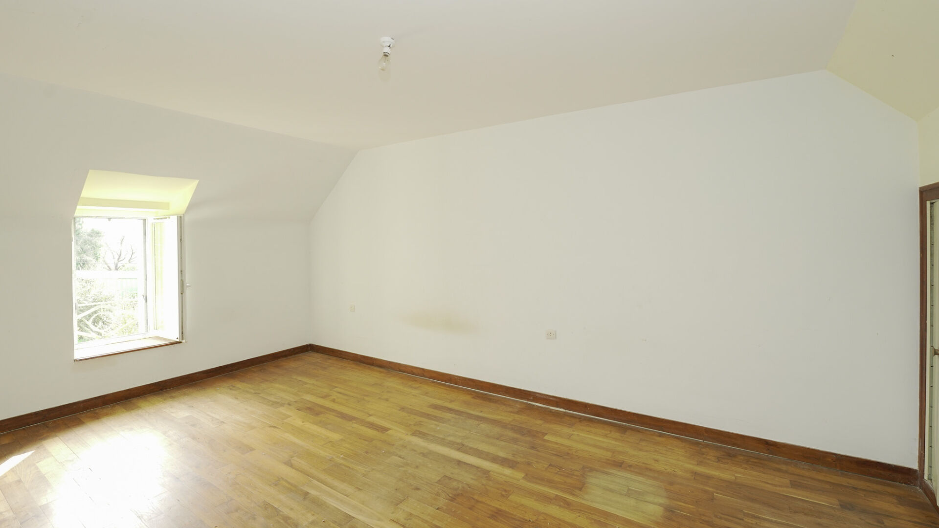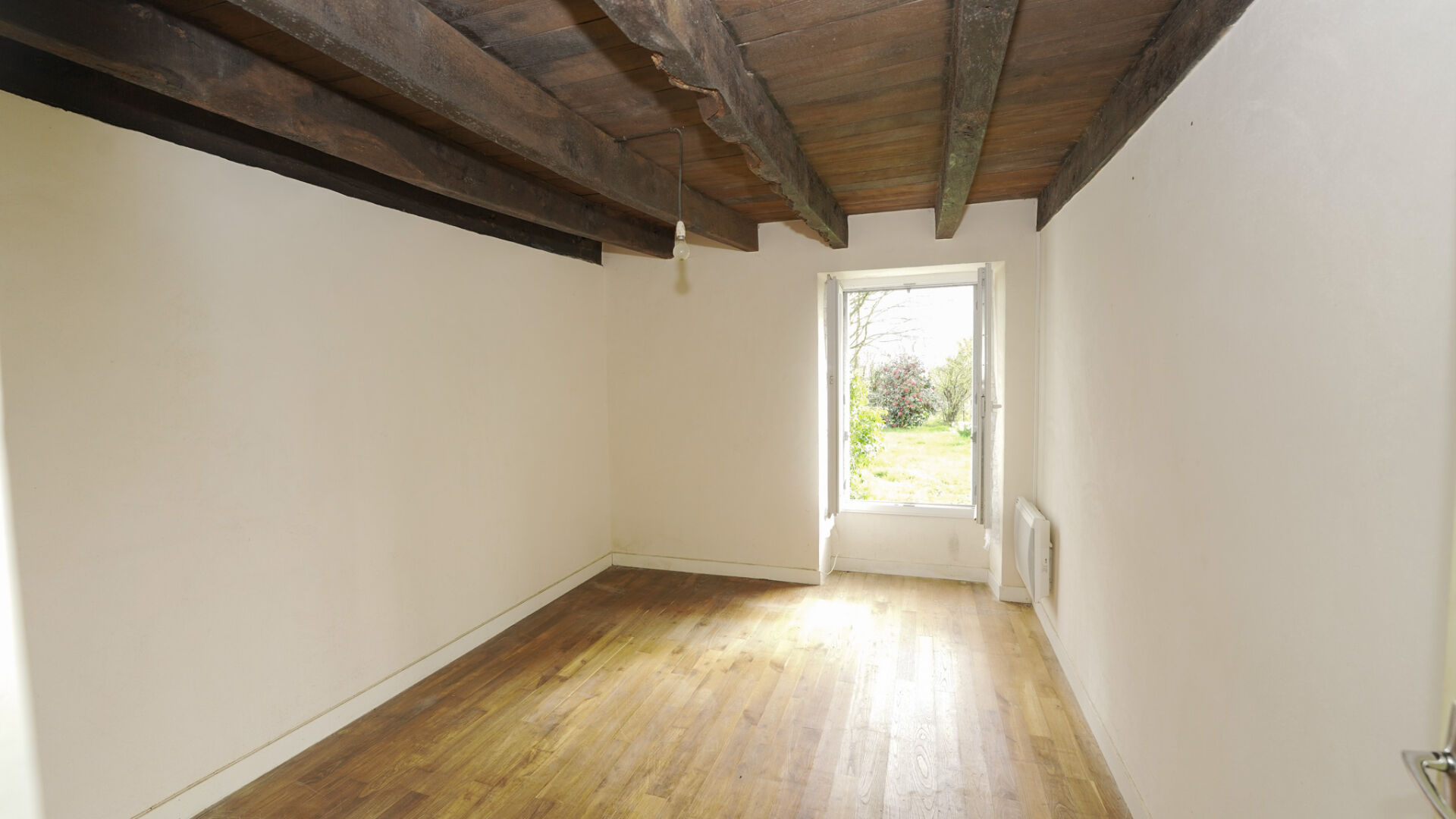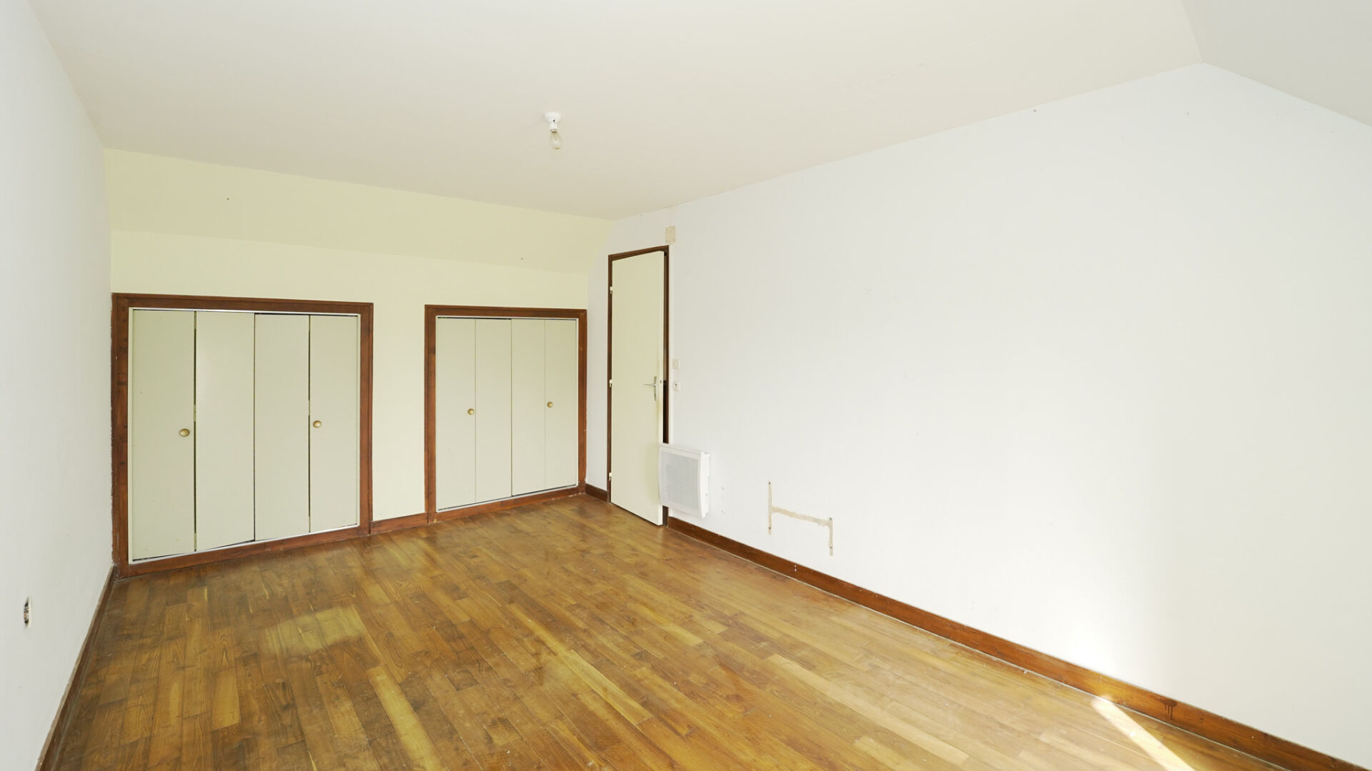 À l'étage, un couloir dessert trois chambres lumineuses, dont deux avec placards intégrés.