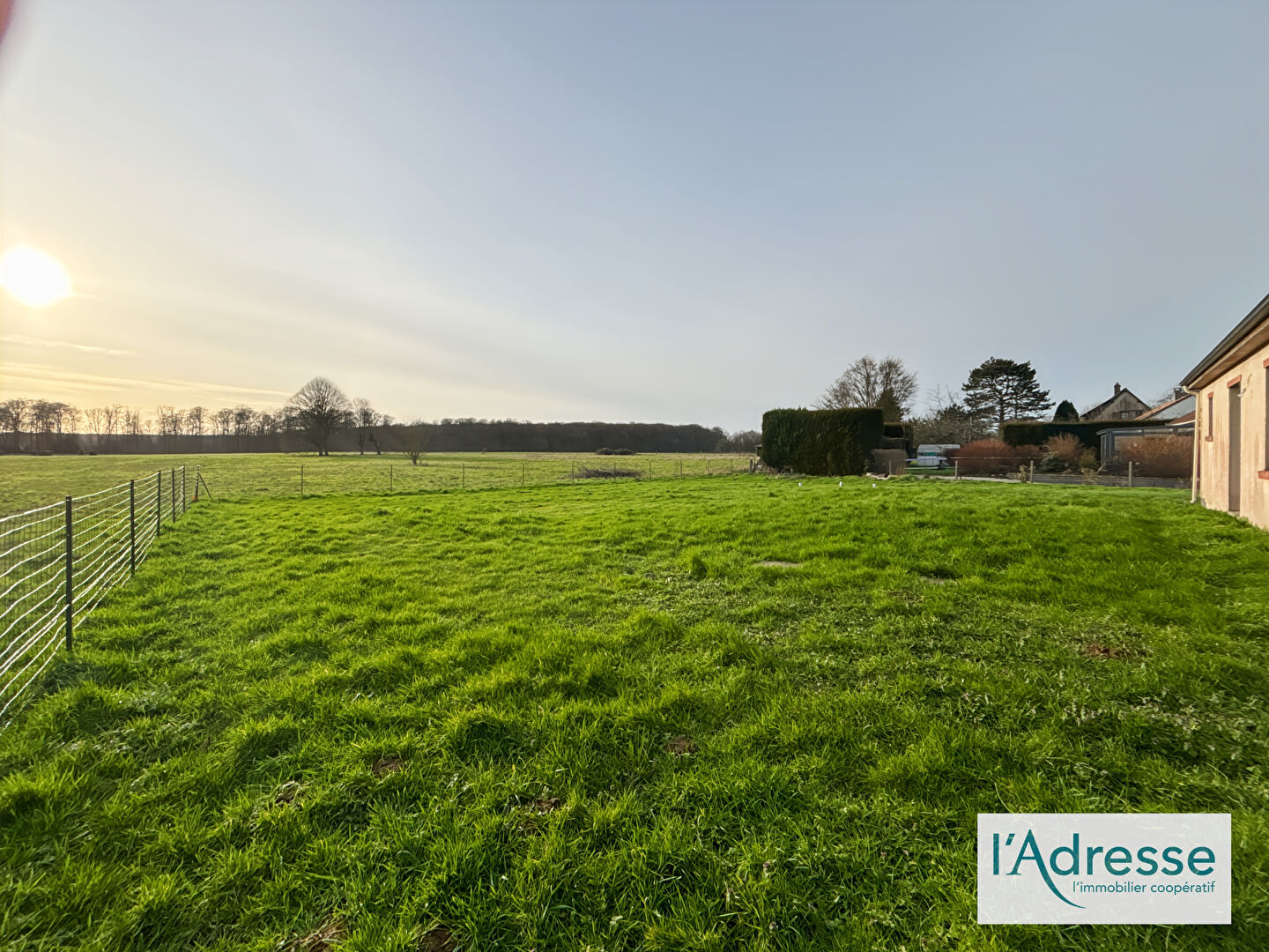 Belle parcelle de plus de 1500m2 avec vue dégagée sur un grand champ, garage, assainissement individuel, chauffage électrique