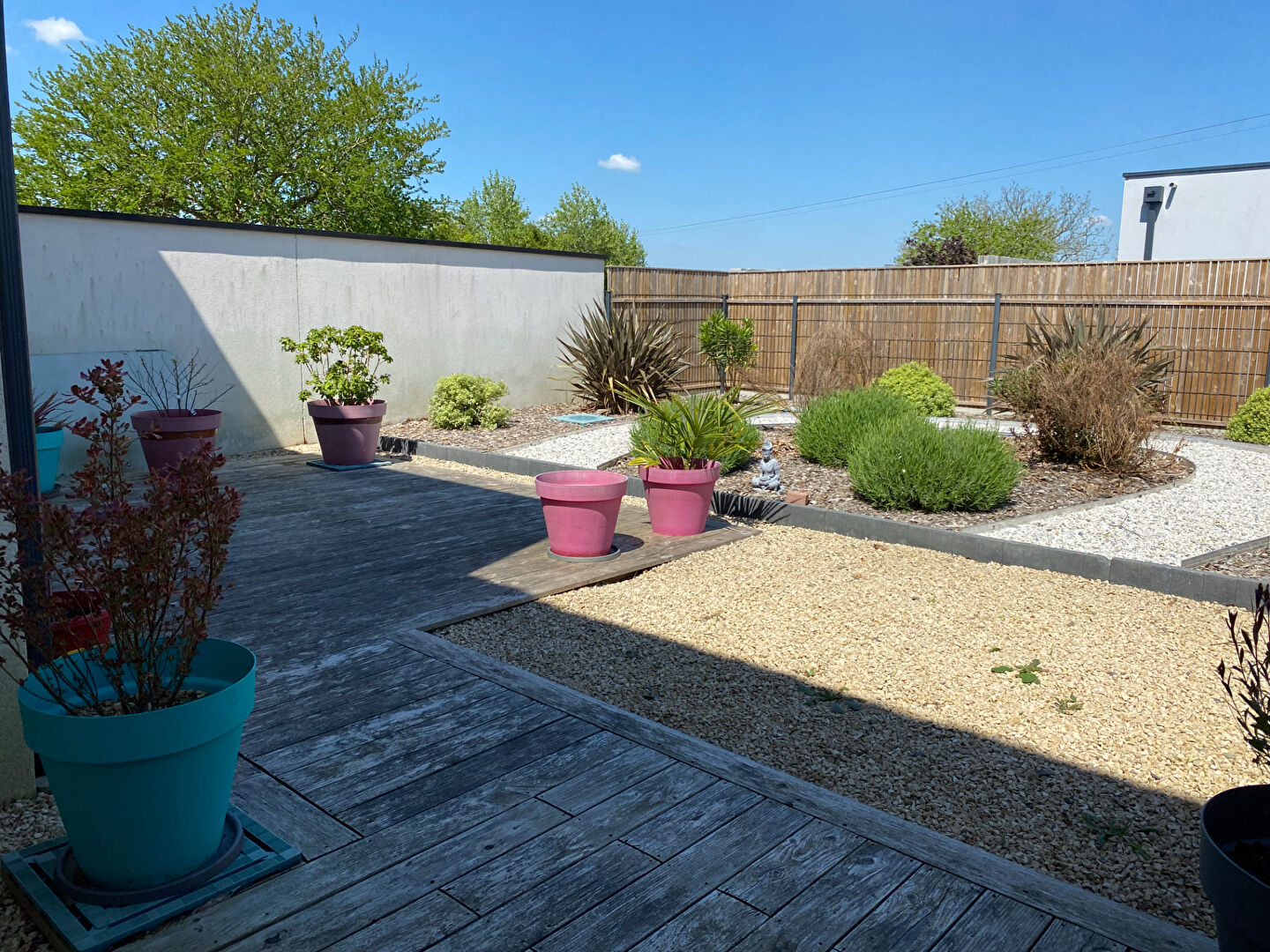 Le jardin, entièrement clos, paysagé et soigneusement arboré, pour profiter pleinement des beaux jours.