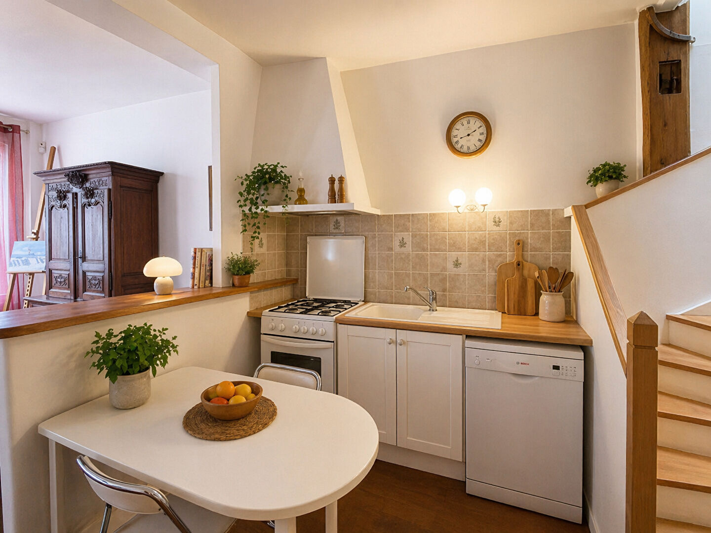 Vous trouverez également au même niveau, un appartement de 52 m2 avec son accès indépendant comprenant une cuisine aménagée ouverte sur le séjour, une chambre, une salle d'eau avec WC, ainsi qu'un escalier menant à une grande pièce sous combles de 24 m² (chambres, bureau).