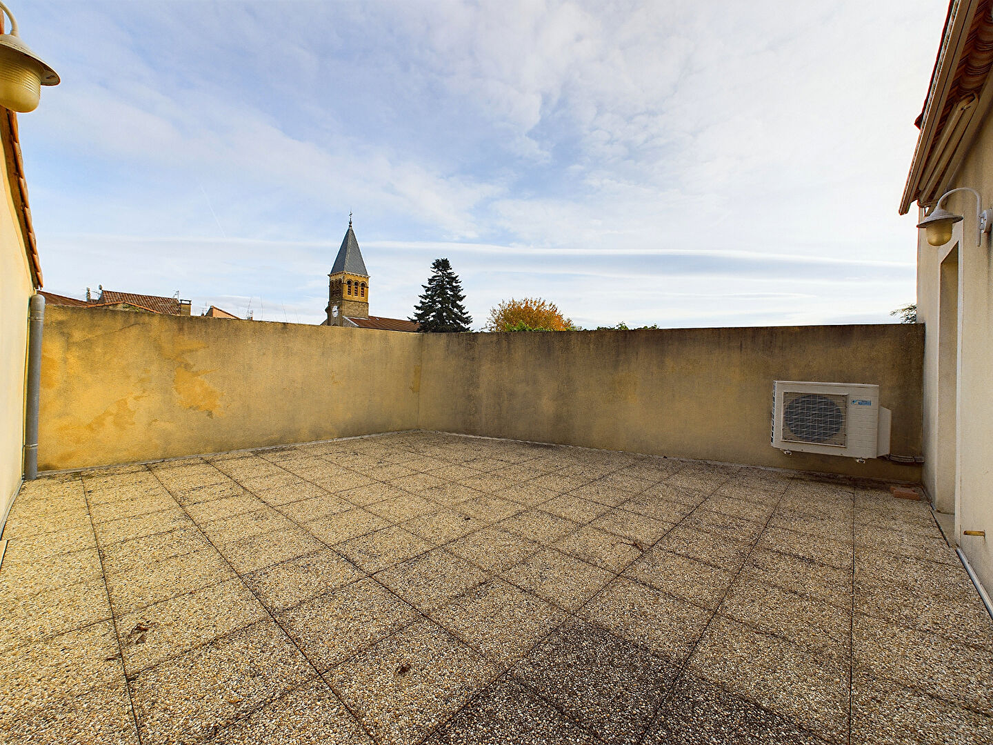 À l'étage, cinq chambres dont trois climatisées, une salle d'eau et une grande terrasse de 35 m² sans vis-à-vis avec une très belle vue sur le clocher de l'église.