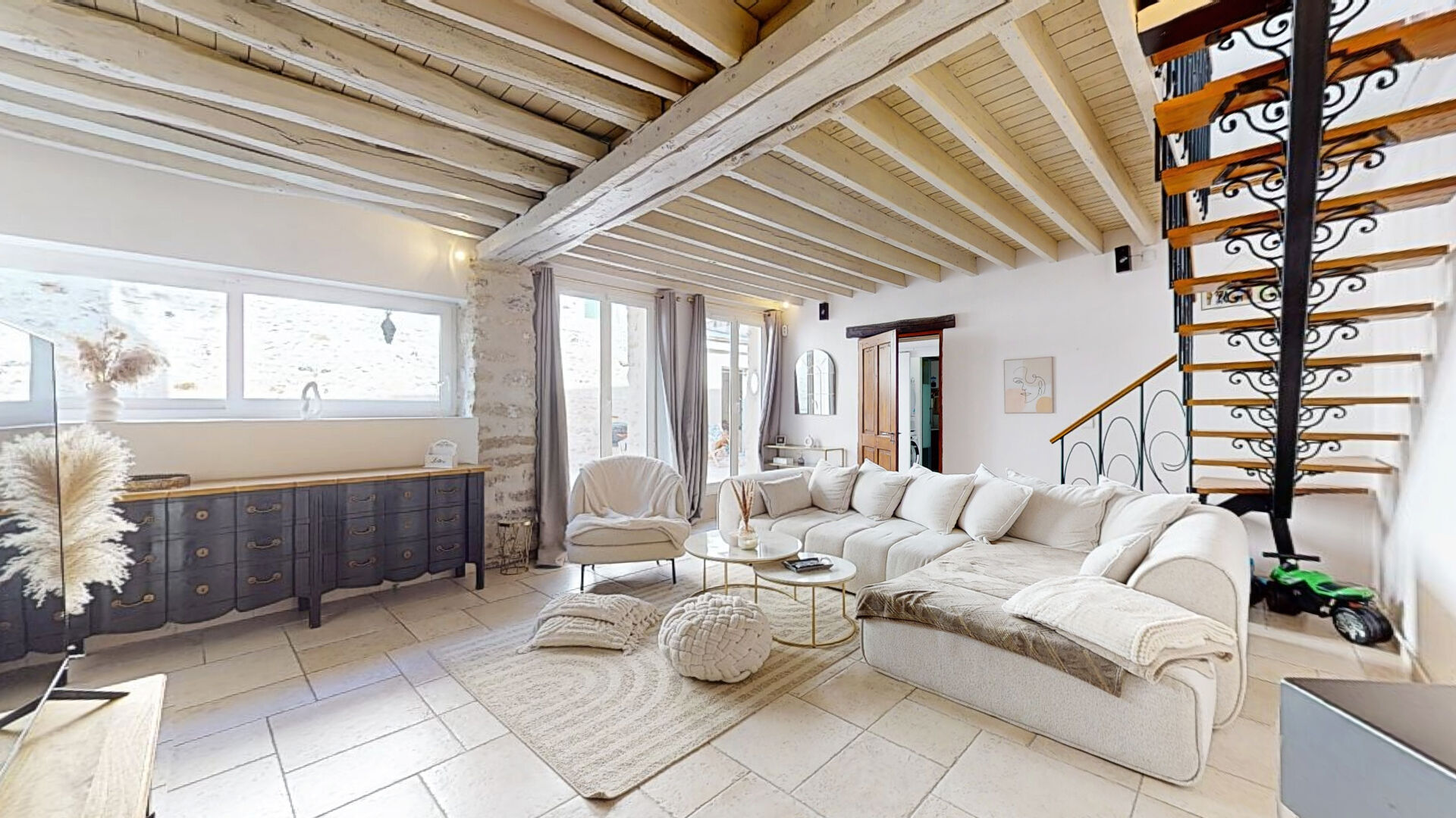 Cette maison est très lumineuse et donne accès sur une grande terrasse exposée SUD-OUEST.