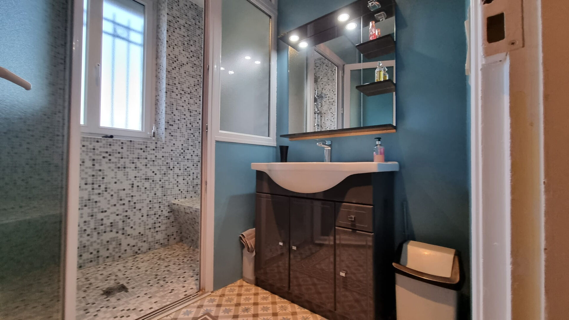 Elle se compose au rez-de-chaussée: une entrée, une grande cuisine dinatoire aménagée et équipée ouverte sur un double salon séjour très lumineux, une chambre, une salle de douche avec un hammam, un WC.
