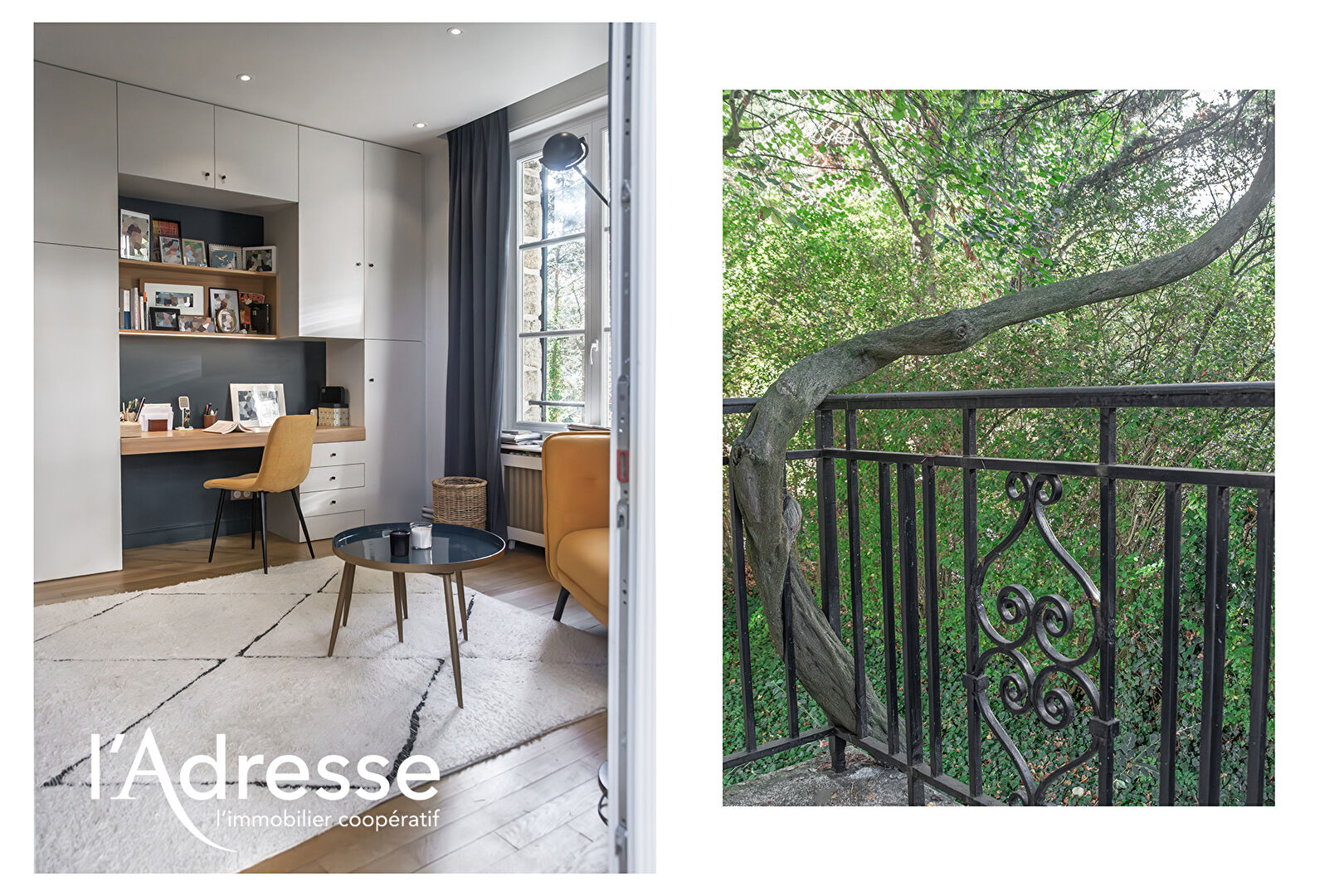 Dès l'entrée, la hauteur sous plafond apporte une agréable sensation d'espace. Le salon séduit par ses moulures, ses parquets d'époque et sa cheminée décorative, et s'ouvre sur un lumineux jardin d'hiver. De l'autre côté, une grande cuisine dînatoire avec verrières associe convivialité et praticité.