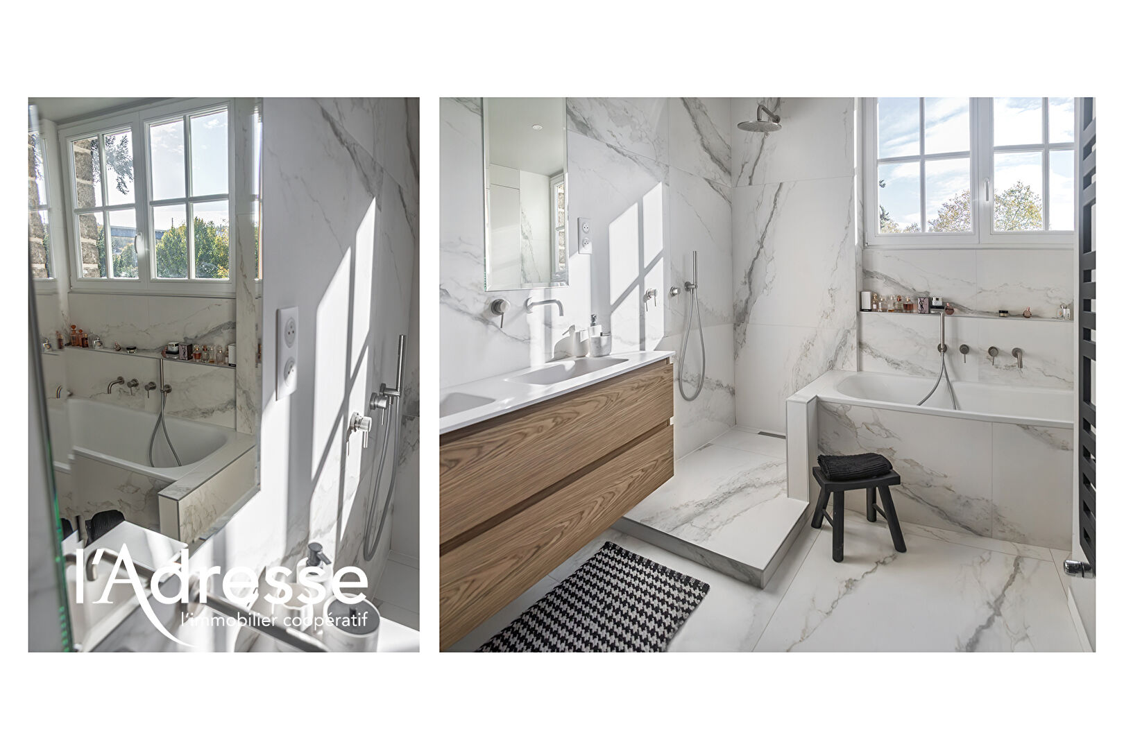 À l'étage, trois chambres avec rangements sur mesure, un dressing, une salle de bains avec baignoire et douche offrent un confort idéal.