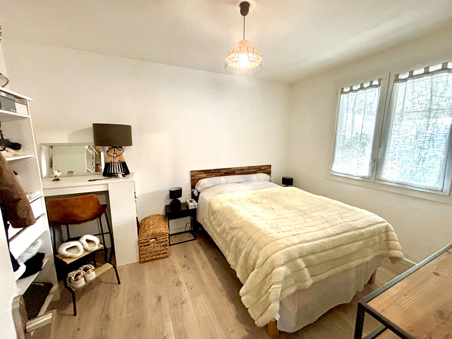 Elle se compose au rez-de-chaussée d'un premier appartement de 58m2 entièrement refait à neuf sur deux niveaux avec séjour, cuisine, deux chambres, un bureau et une salle d'eau avec WC. Elle dispose également d'une véranda de 14m2 avec une seconde salle d'eau avec WC, un jardin et un garage fermé de 20m2.