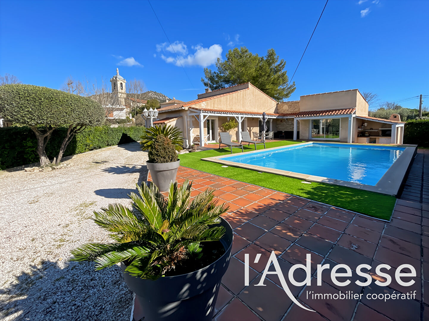 Marseille 13011. Au coeur du charmant village d'Eoures, très recherché pour son calme et ses commerces de proximité accessibles à pied (dont la célèbre épicerie rendue mythique par Fernandel dans Le Schpountz), découvrez cette rare opportunité d'acquérir une maison de plain-pied de type 5. Située en voie sans issue, au fond d'un petit lotissement paisible et facile d'accès, cette maison bénéficie d'un magnifique terrain clos, plat et arboré de 915 m², agrémenté d'un puits actif. À l'extérieur, vous profiterez d'un cadre de vie idéal avec une belle piscine parfaitement exposée, une cuisine d'été, ainsi qu'une terrasse couverte filante en façade, offrant un espace convivial et accueillant. À l'arrière, côté véranda et entrée principale, se trouve un grand double garage, avec accès direct à la maison par l'intérieur ? un confort appréciable au quotidien. L'intérieur propose une belle pièce de vie lumineuse, comprenant un salon / salle à manger et une cuisine ouverte aménagée et équipée, quasi neuve, complétée par une buanderie. De larges baies vitrées permettent un accès direct à la piscine. L'espace nuit se compose de 3 belles chambres avec rangements et d'une grande salle d'eau avec WC, bénéficiant de deux fenêtres. En résumé : une maison soigneusement entretenue, modernisée et particulièrement agréable à vivre. N'hésitez pas à nous contacter rapidement pour organiser une visite. Nous serons ravis de vous la présenter ? et convaincus qu'elle suscitera chez vous le même coup de coeur.